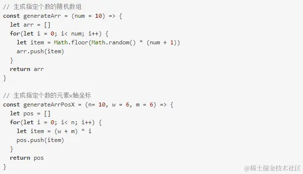 有了以上两个方法,我们就可以生成任意个数的数组以及数组项坐标了,这两个方法接下来我们会用到.