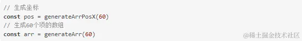 接下来我们来测试一下, 我们用generateArr方法生成60个数组项的数组, 并动态生成元素坐标: