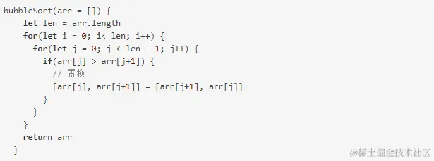 冒泡排序的实现思路是比较任何两个相邻的项, 如果前者比后者大, 则将它们互换位置.