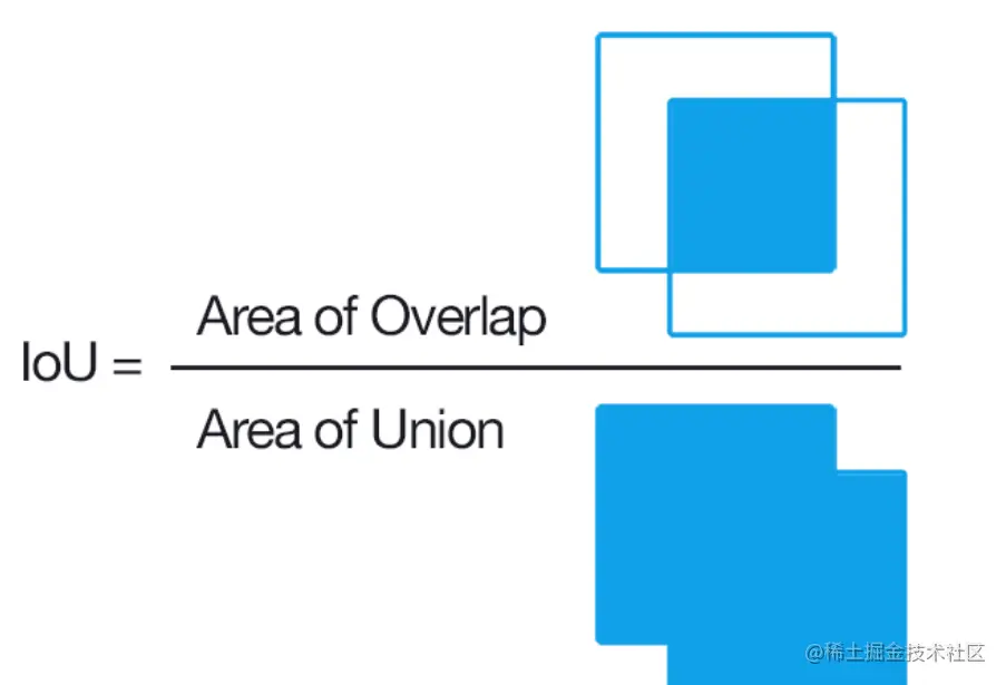 IoU是预测框与ground truth的交集和并集的比值。对于每个类,预测框和ground truth重叠的区域是交集, 而横跨的总区域就是并集。
