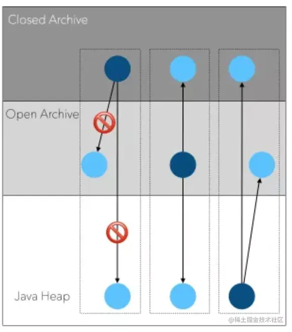 - 不允许引用 Open Archive 和 Heap 中的对象
