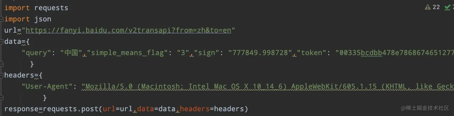 通过上一步骤我们获取到了data,URL,类型为post,以及headers,便可书写如下代码: