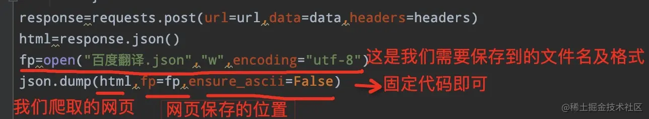 这是我们这个练习的完整代码,大家可以试着运行一下,我们会发现使用requests模块,我们需要判断请求类型(post/get),然后根据类型选择参数(data/params),再接着我们根据相应的类型(text/Json),获取到网页信息,最后再保存数据信息即可。