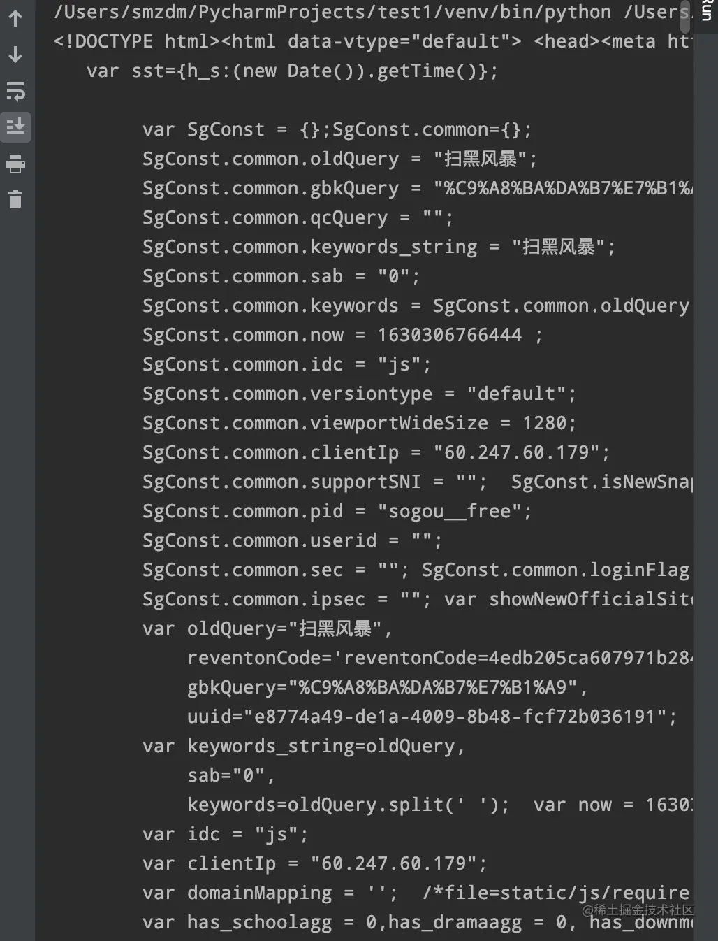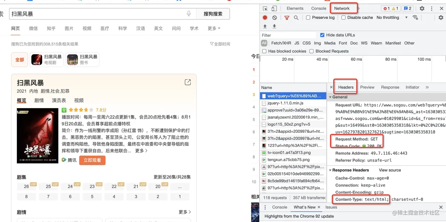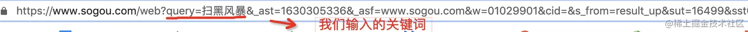 我们只需要保留下图划痕线的部分,”query=扫黑风暴“这部分我们以关键词的形式加入到网址中: