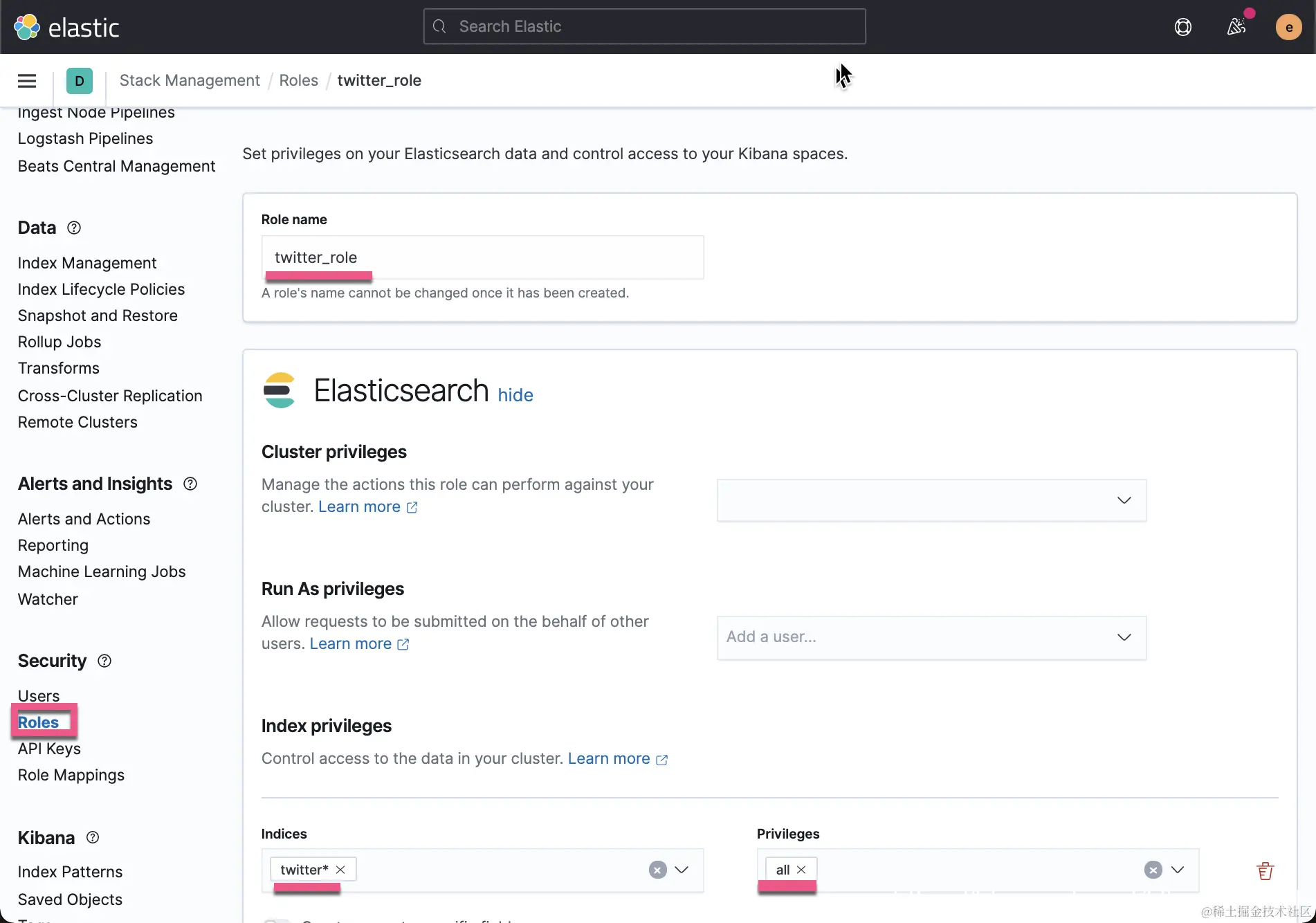 接着我们来为这个索引创建一个叫做 twitter-role 的角色:
