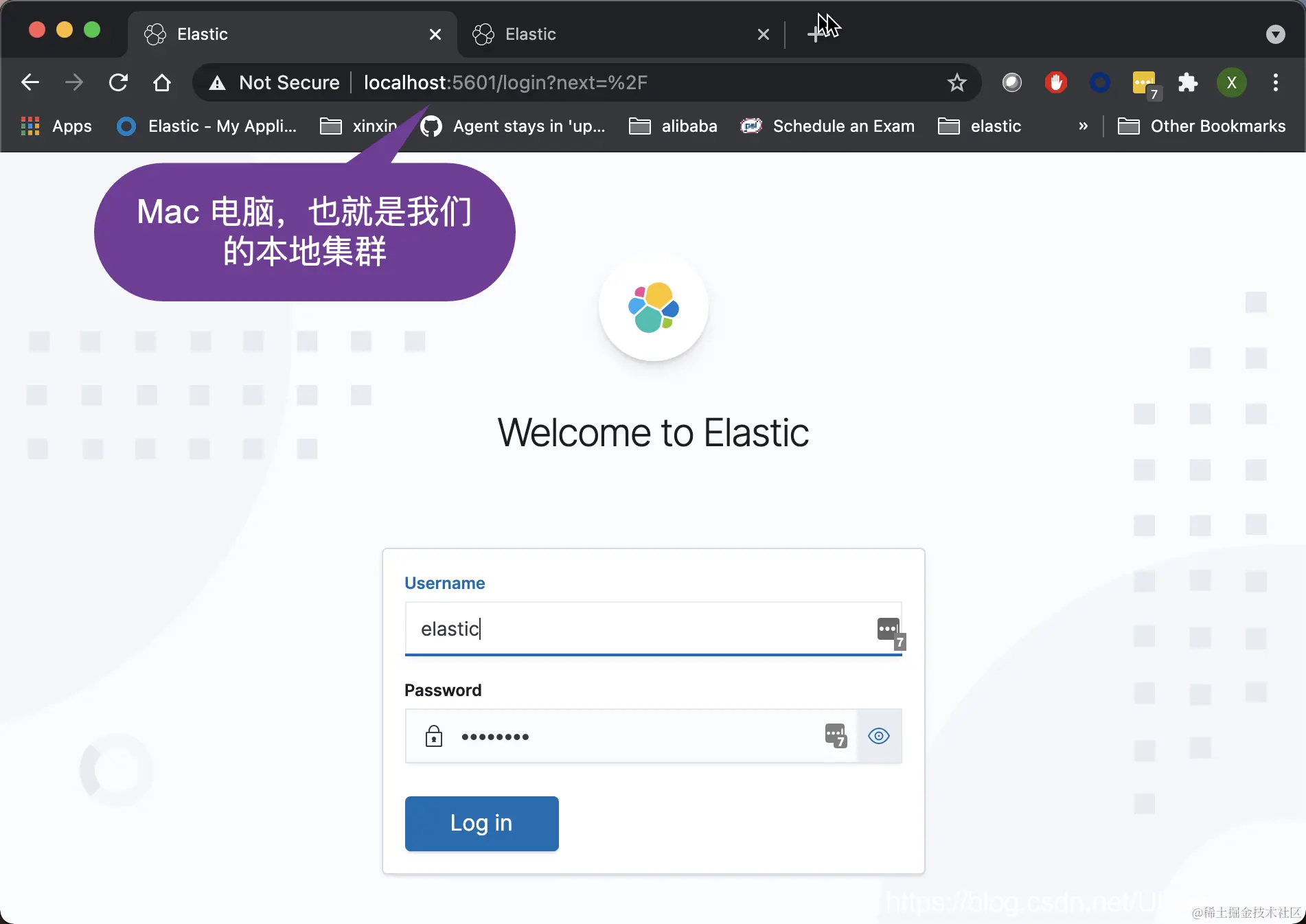 我们切换到 MacOS 中集群。打开本地集群的 Kibana。首先,我们需要为配置一个连接: