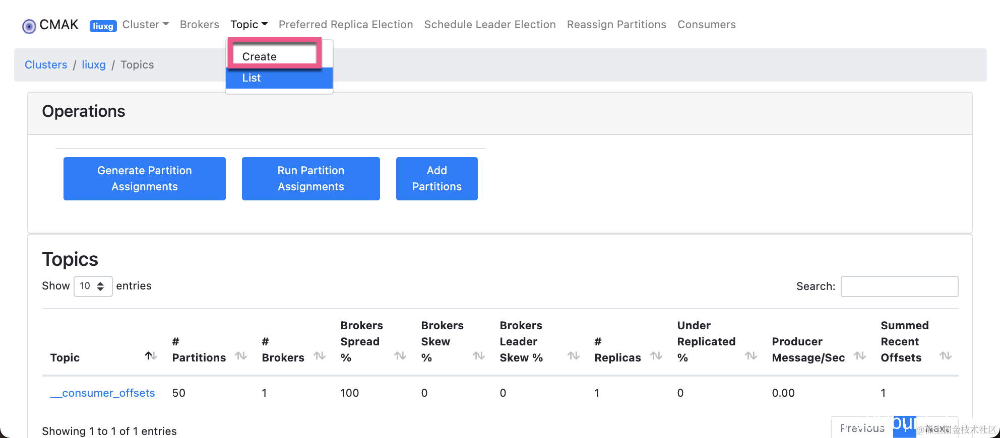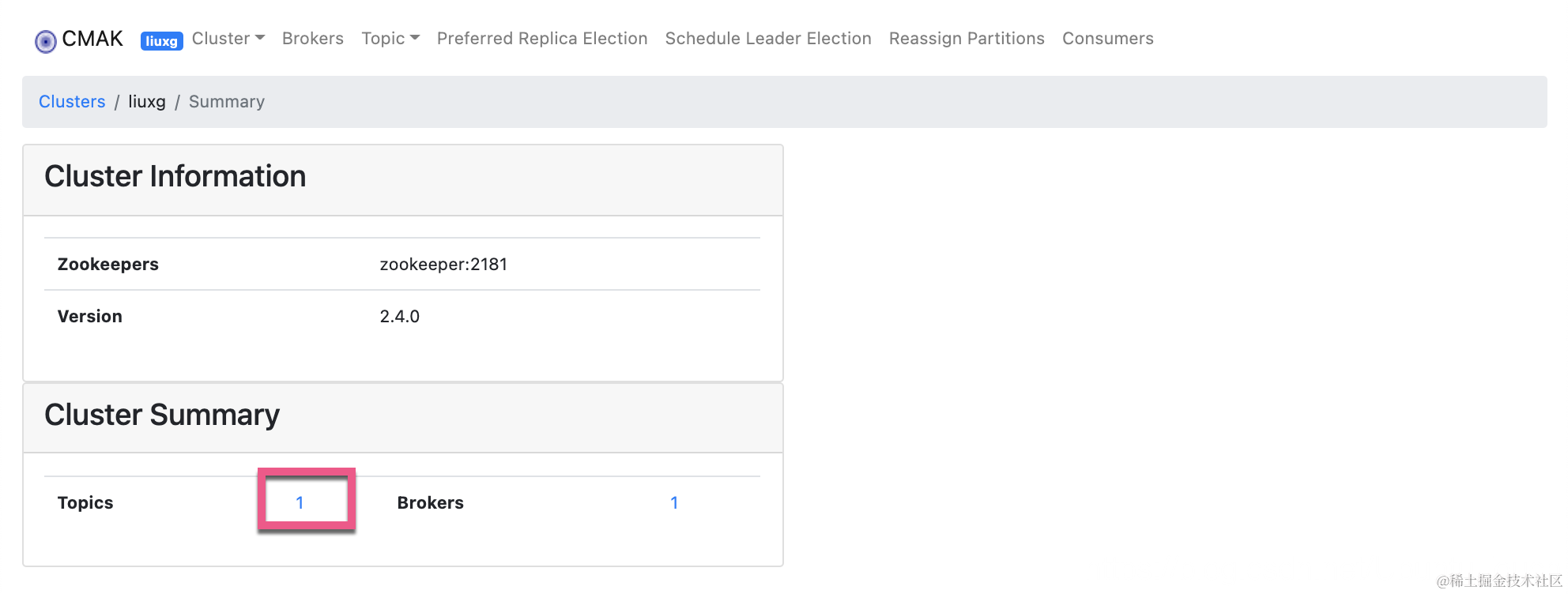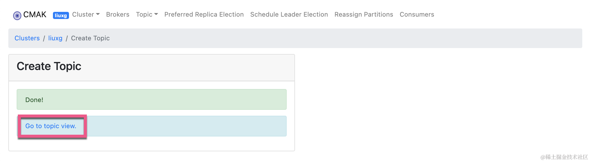 在上面它显示了一个默认的 topic,虽然不是我们想要的。