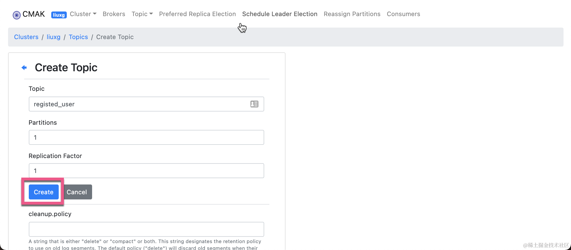 这样,我们就把 Kafka 上的 registered_user topic 创建好了。