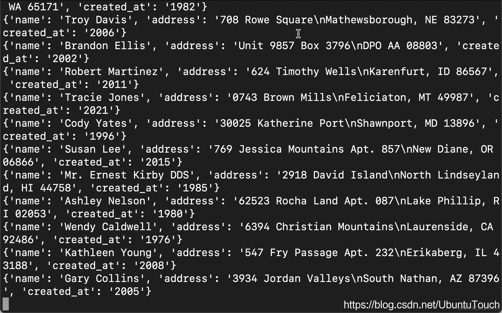 上面的应用每隔4秒就发送一个数据到 Kafka 的 registered_user 这个 topic。每次调用 get_registered_user() 方法将生成不同的注册用户名。