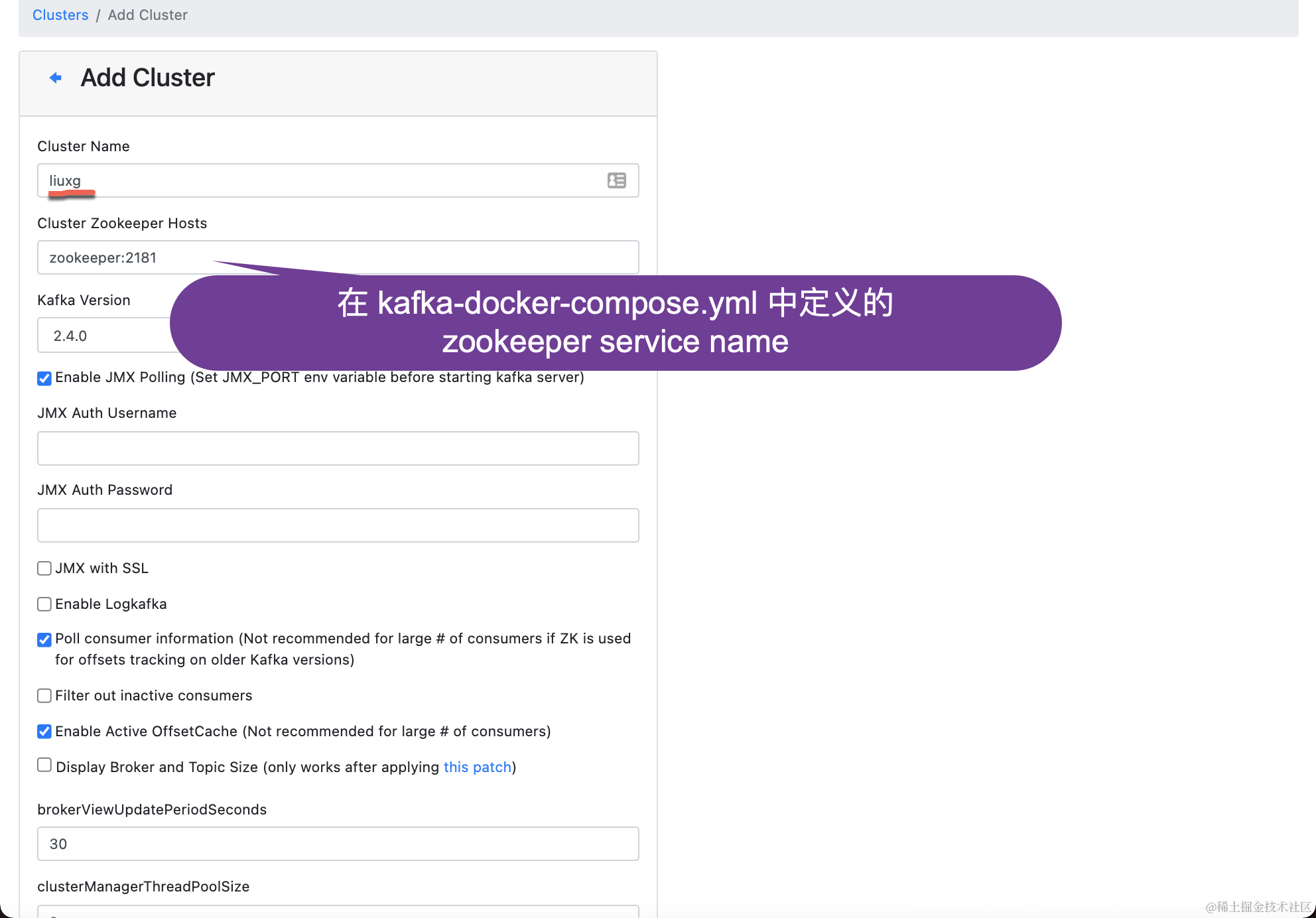 我们发现 Kafka Manager 运行于 9000 端口。我们打开本地电脑的 9000 端口: