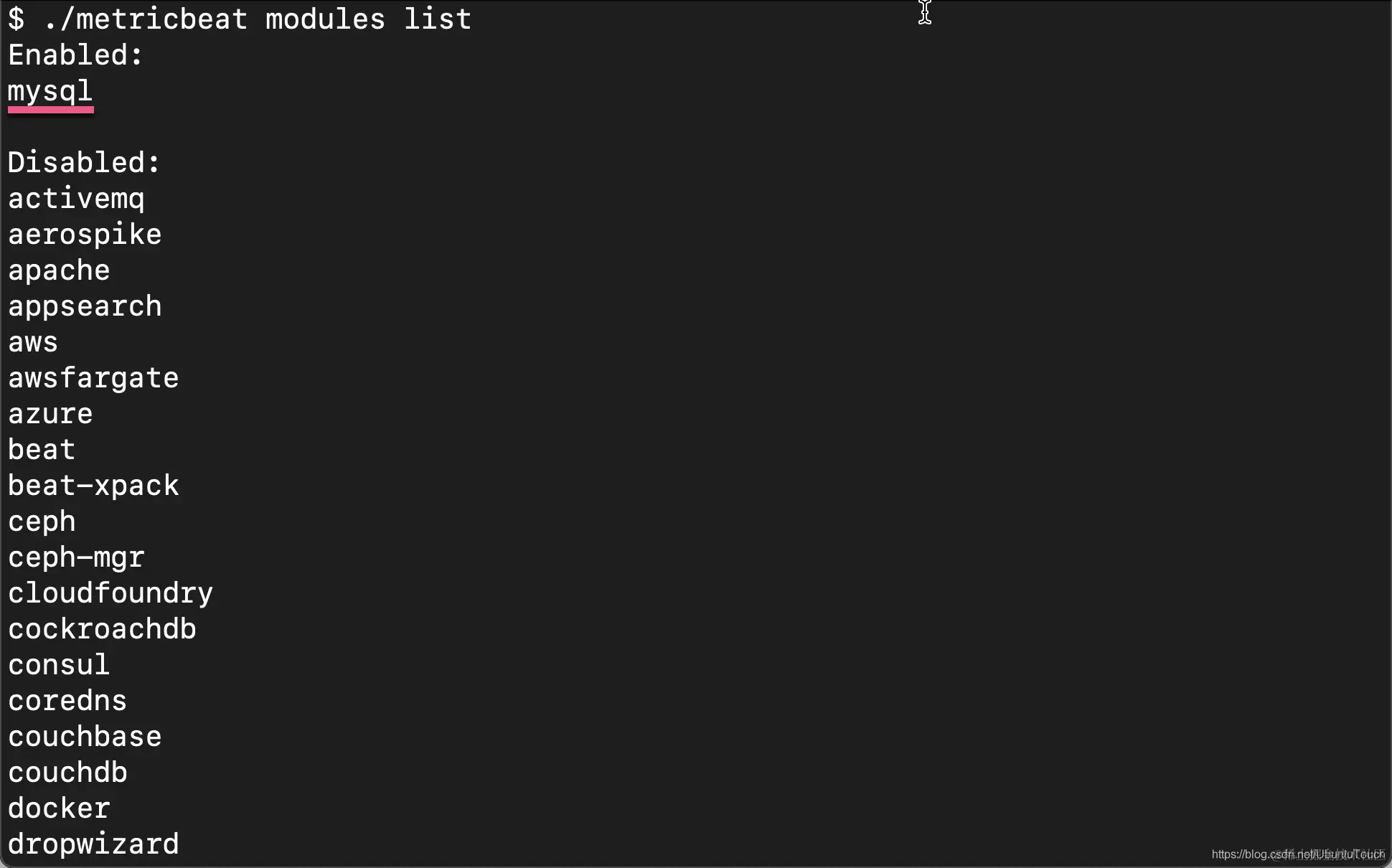 上面显示我们的模块配置是不成功的。我们需要配置 modules.d/mysql.yml