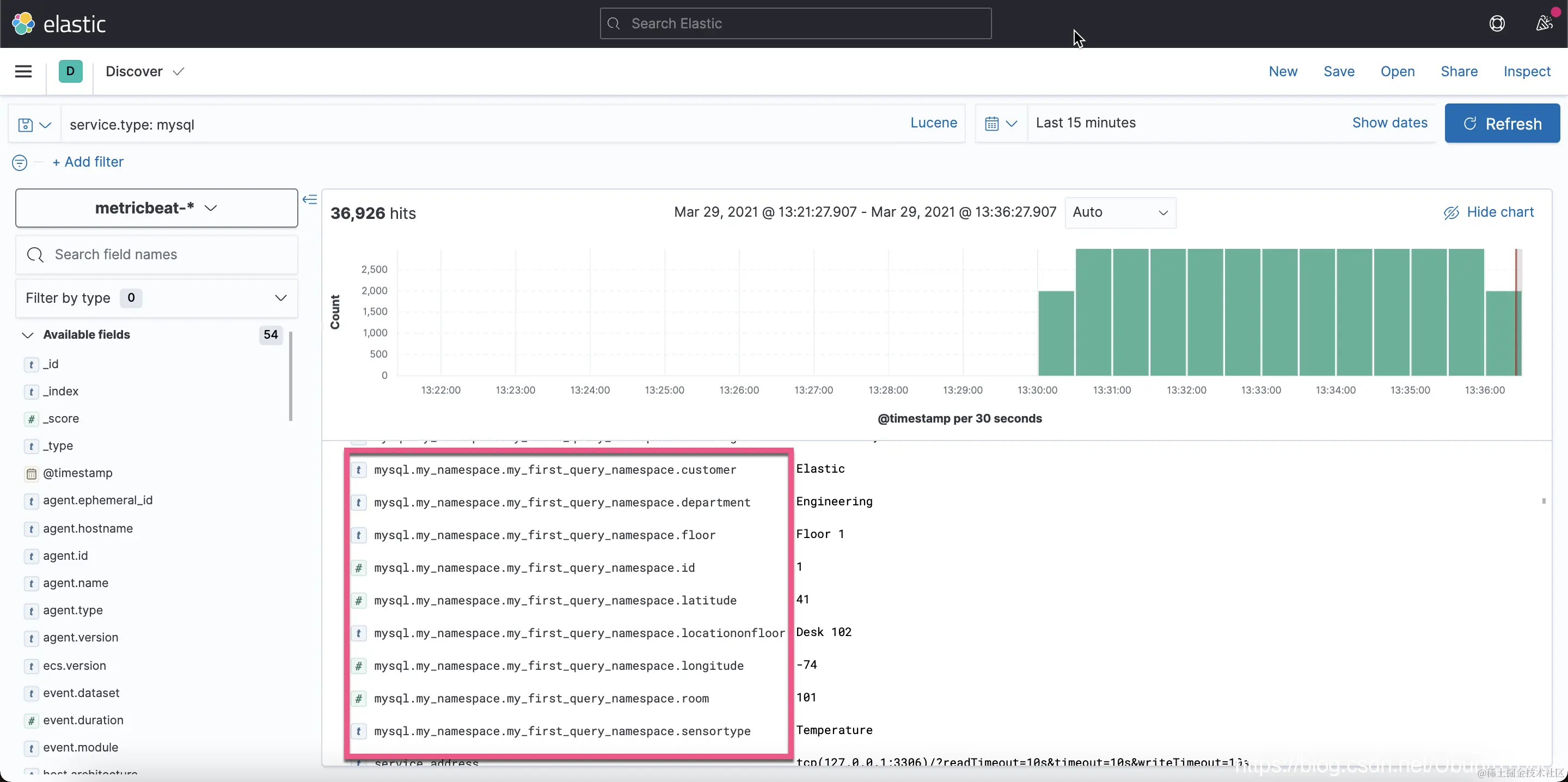 从上面我们可以看出来。event.dataset 来自 mysql.query 还是有蛮多的数据的。