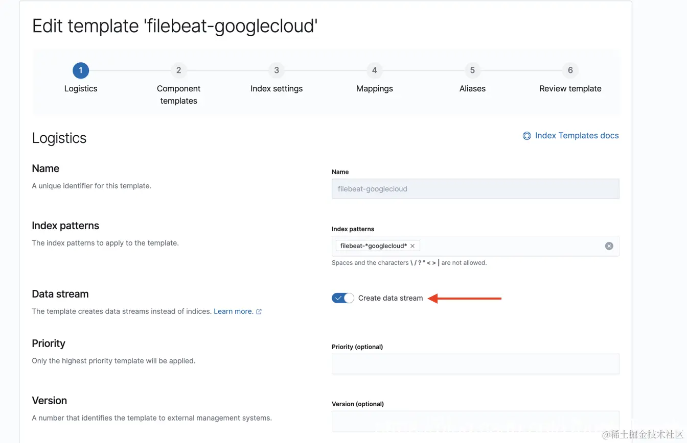 现在,我们可以使用该组件模板为每个数据源创建一个新的索引模板。 让我们从 Google Cloud 模板开始。