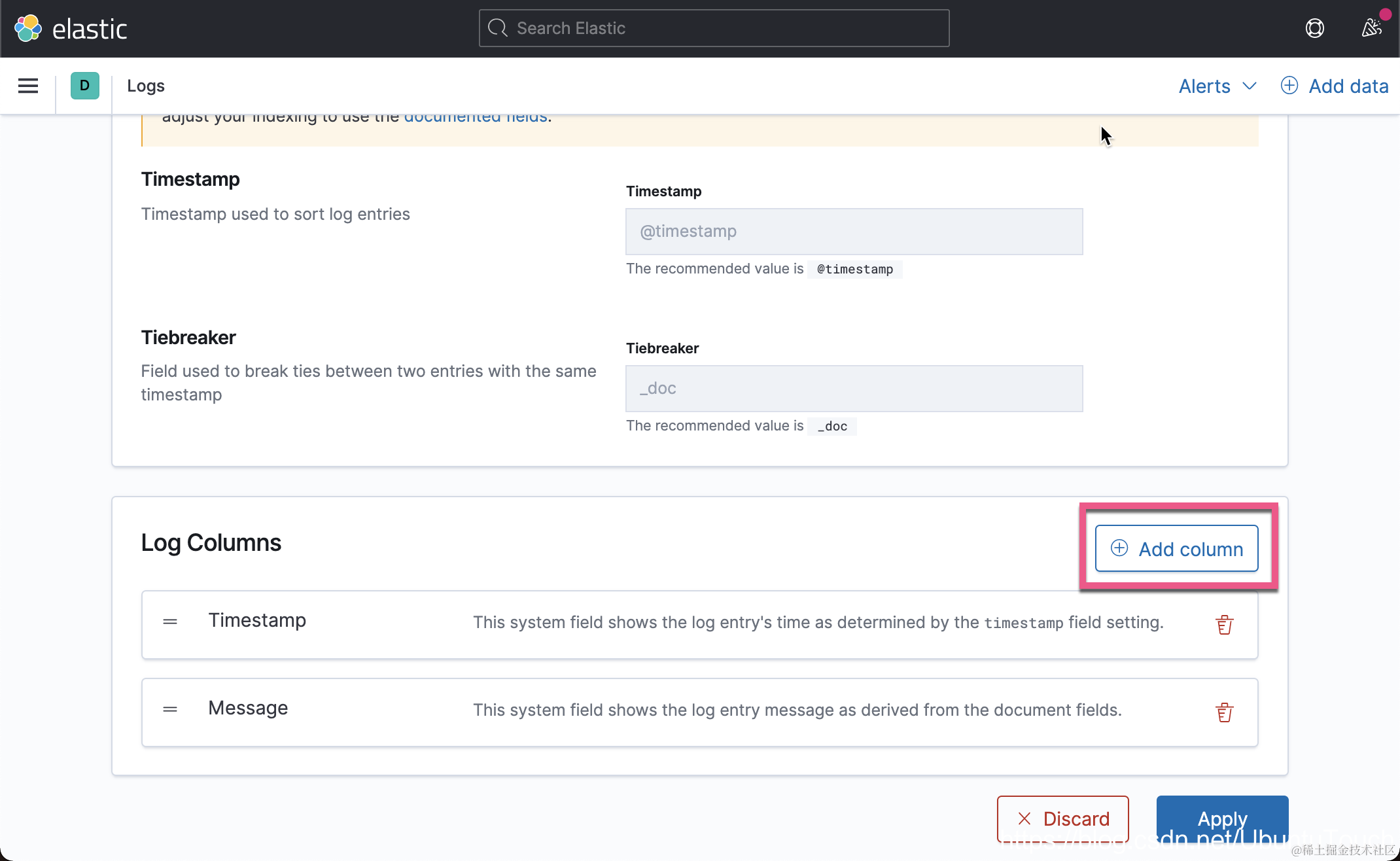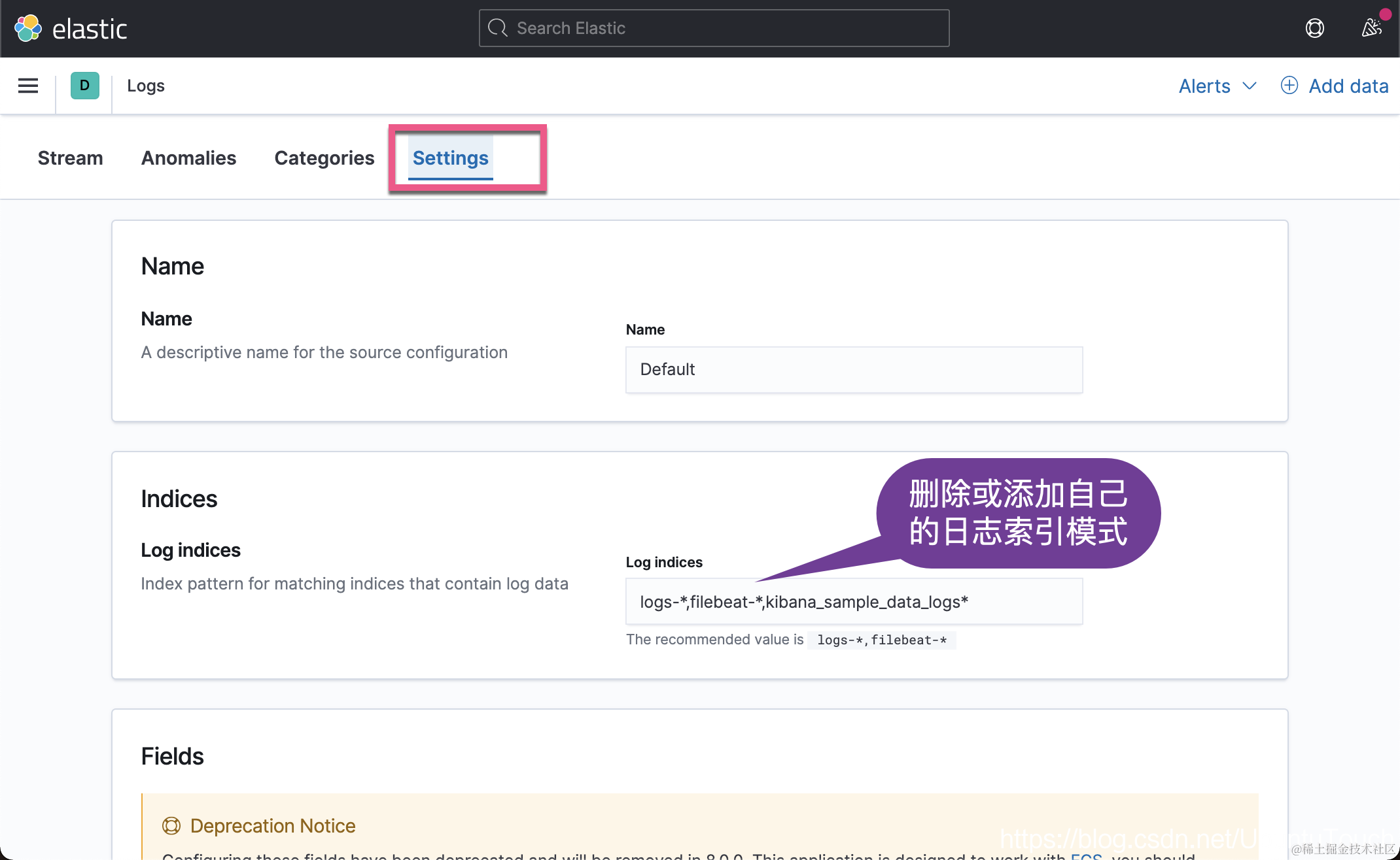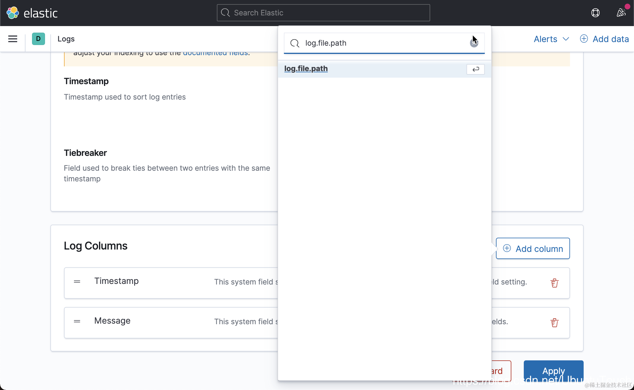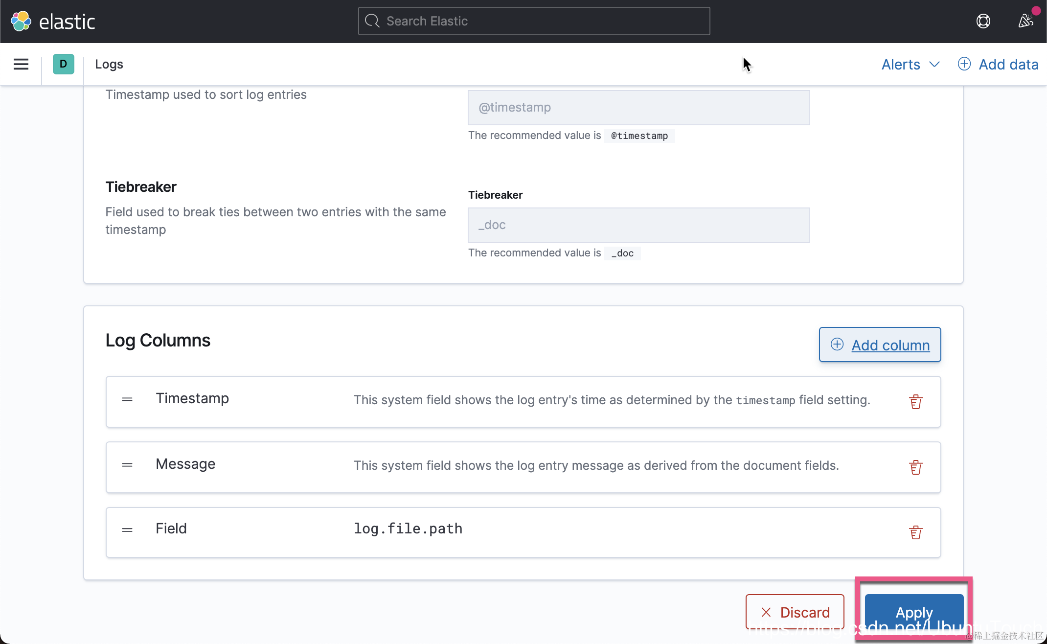 我们在 Settings 里对我们的日志应用进行配置: