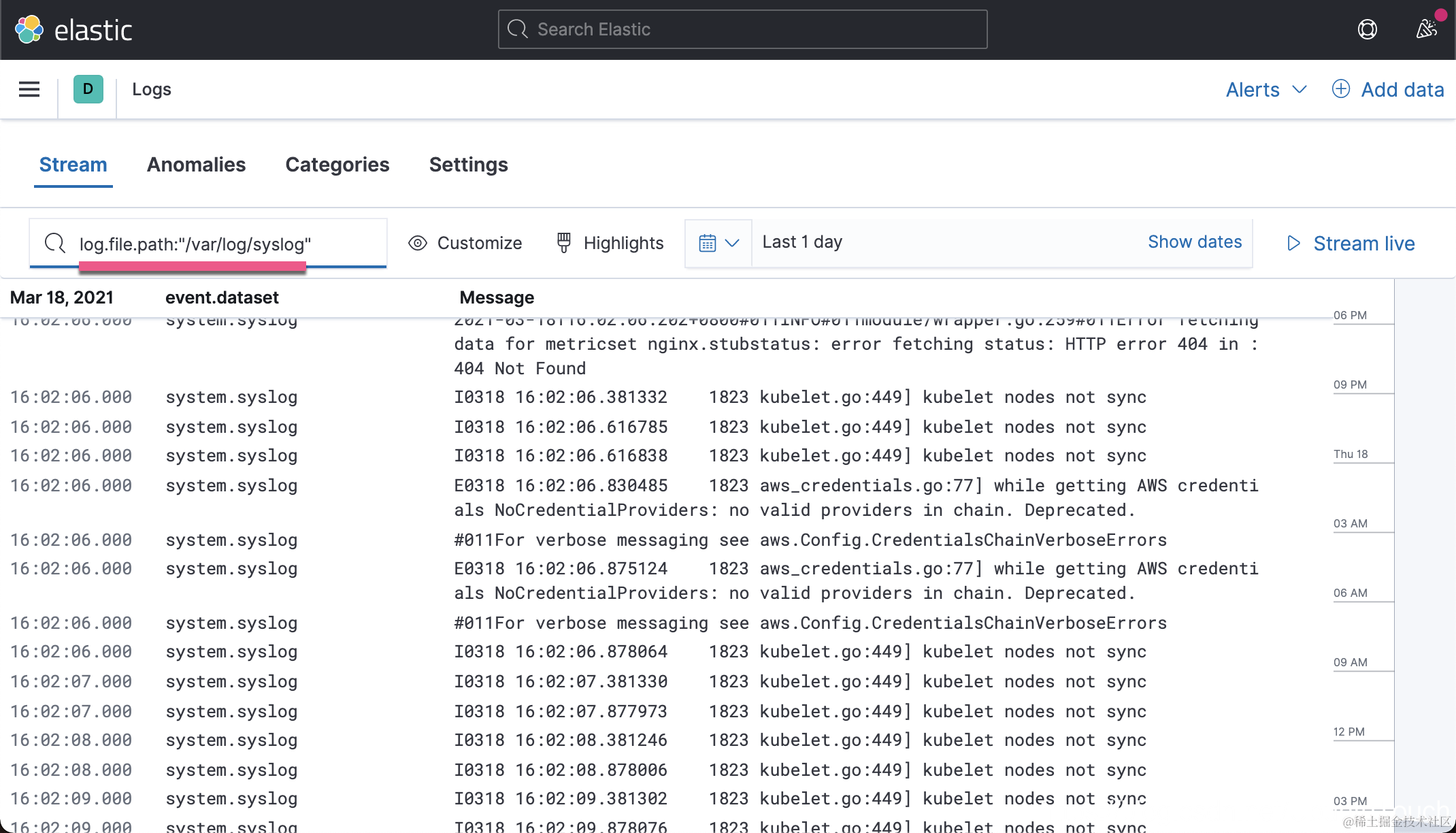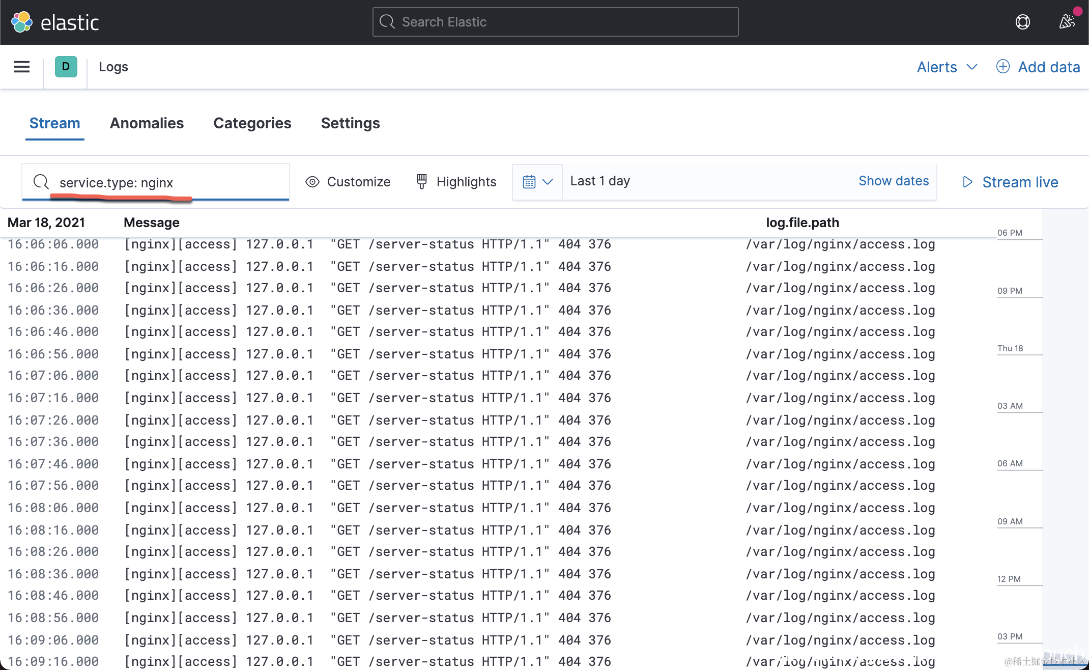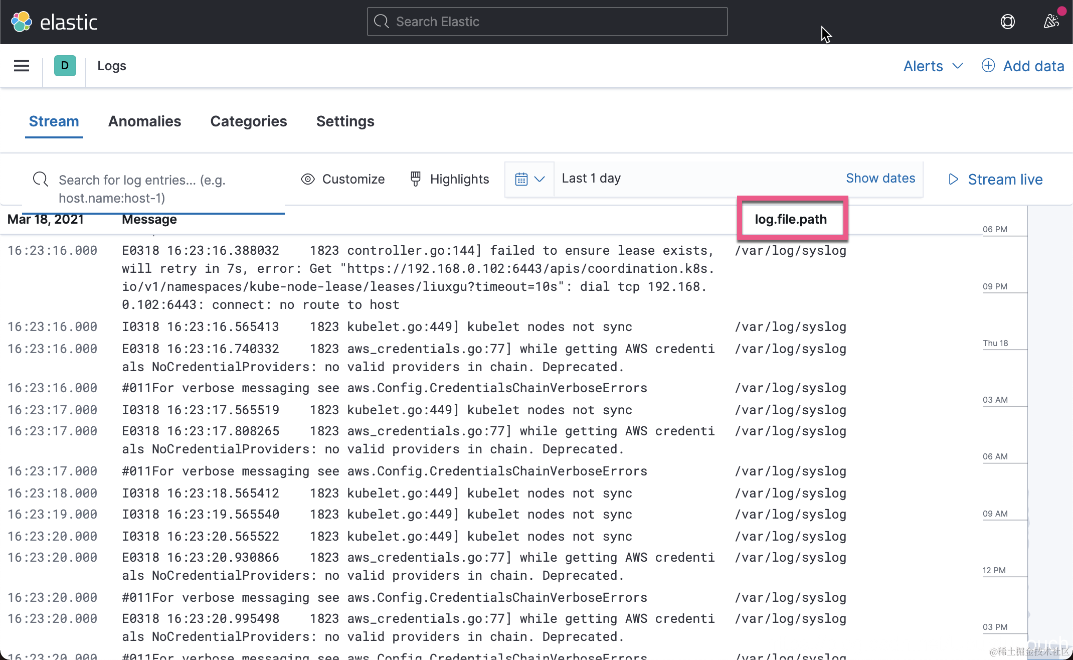那么在 Stream 界面中,我们可以看到 log.file.path 被显示: