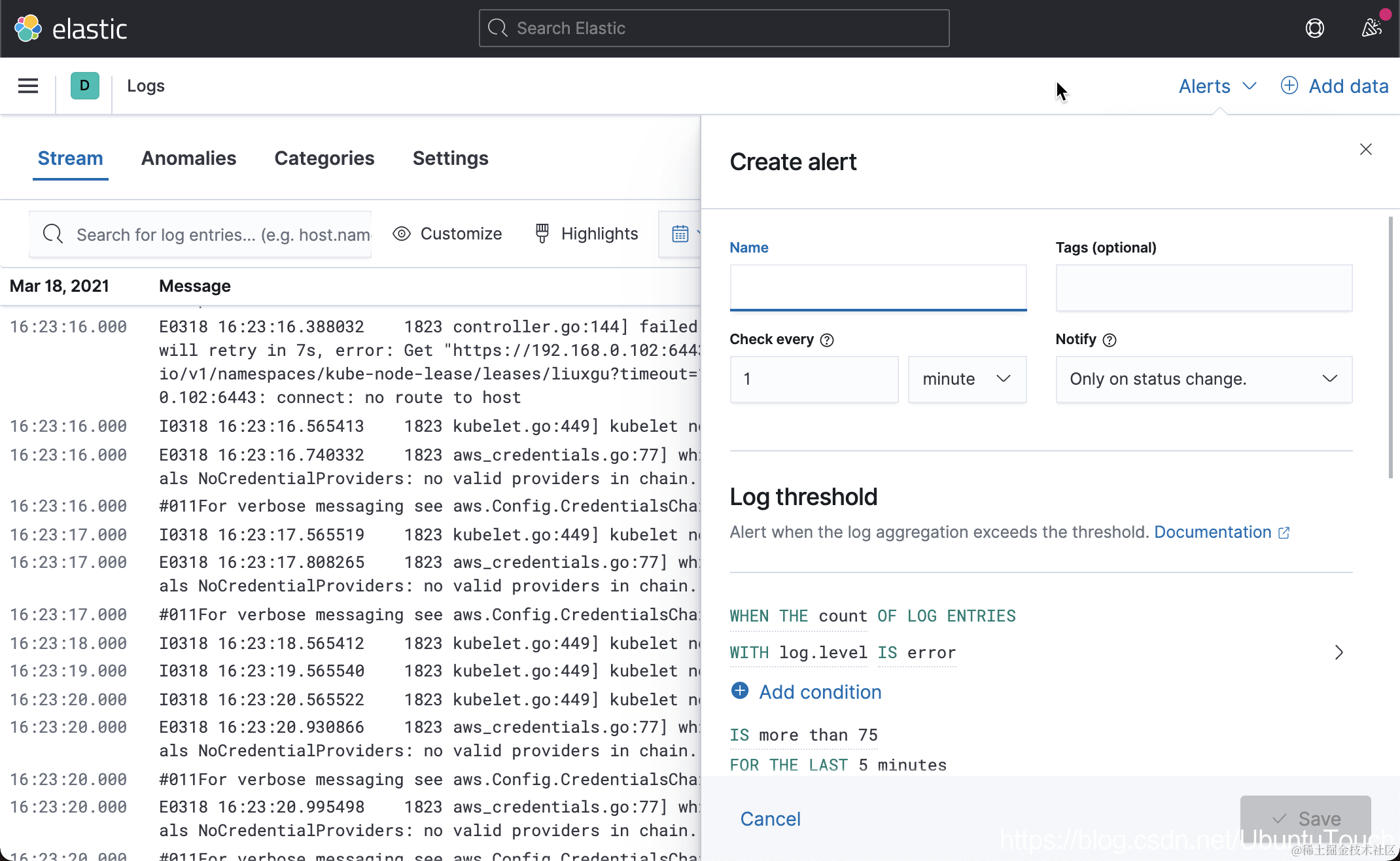 如果大家对如何生产警报不是很熟的话,请参阅我之前的文章 “Elastic:菜鸟上手指南”,并查看 “通知及警报” 一节。