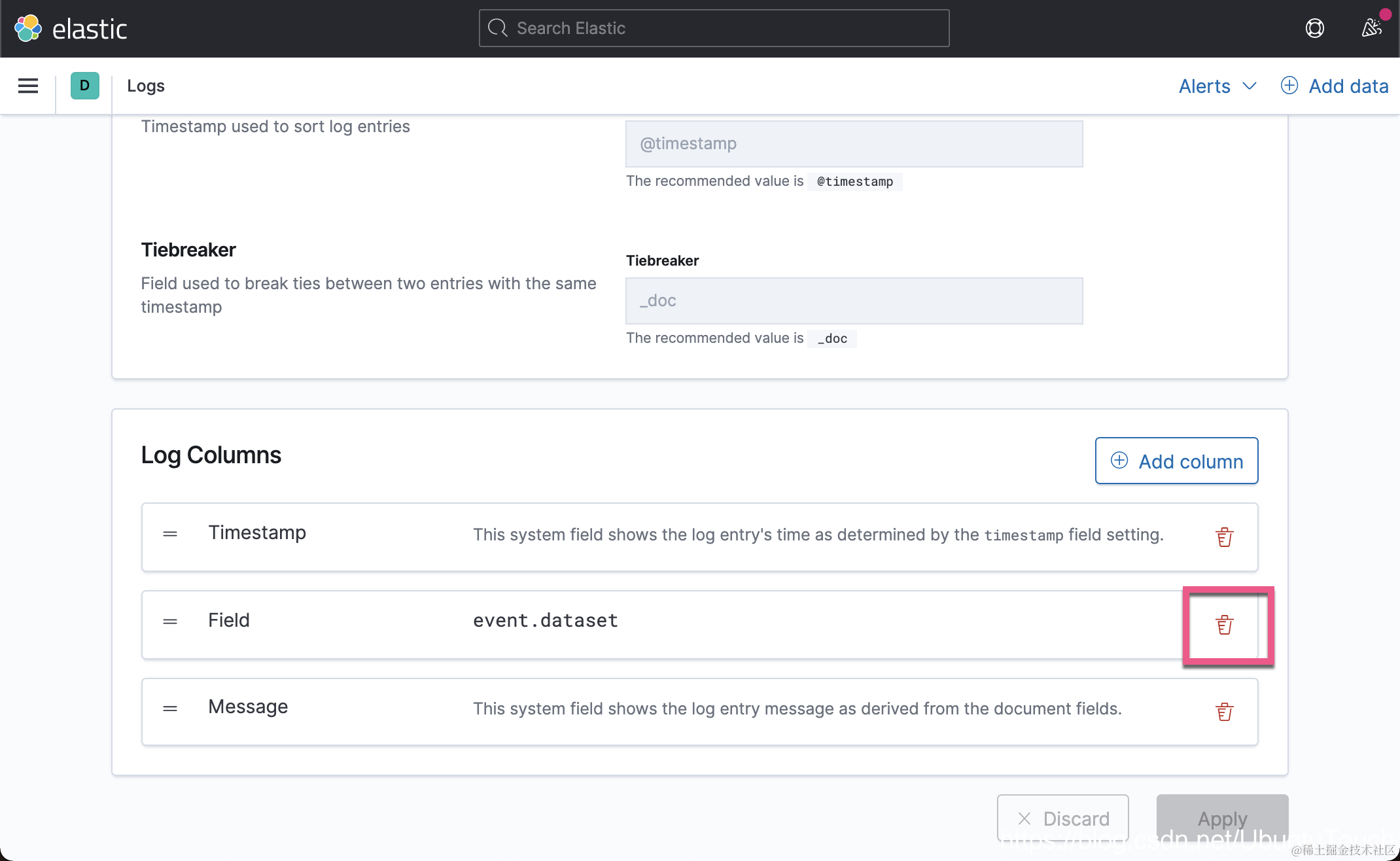 在上面我们删除 event.dataset,并加上 log.file.path: