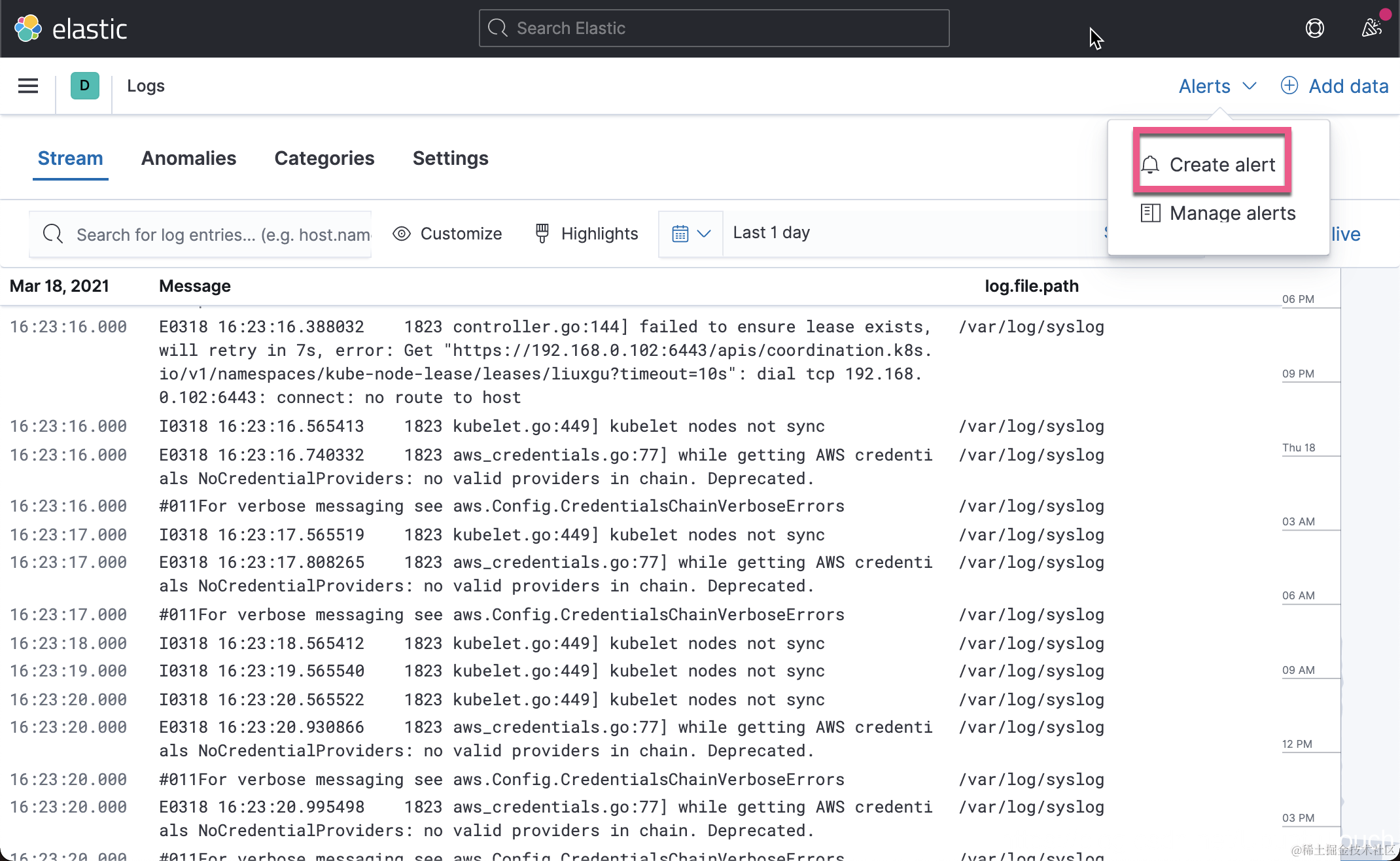 我们可以选择 Create Alerts 来发送警报: