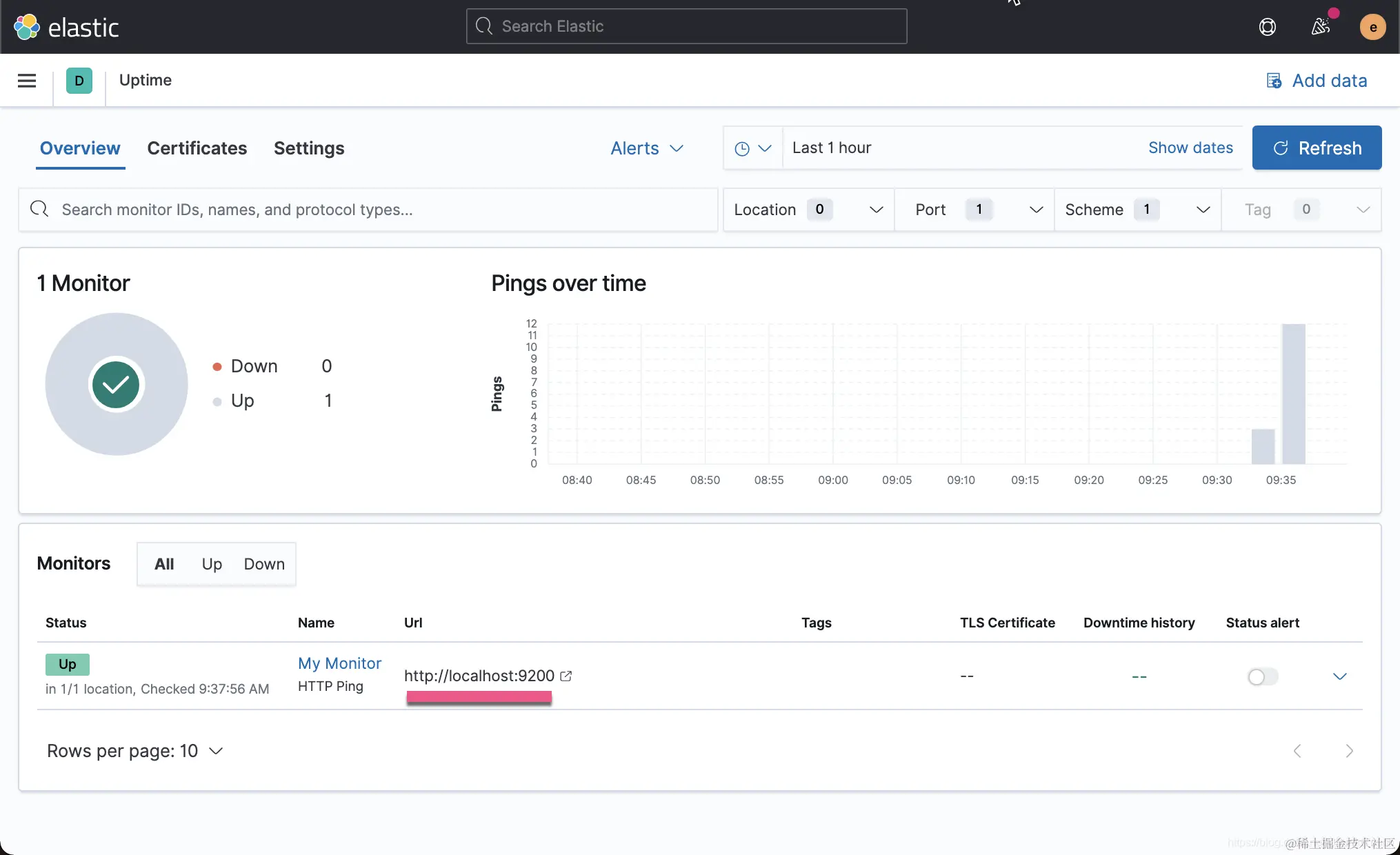 如果你对如何使用 Heartbeat 来对一个网站进行监控的话,你可以参考我之前的文章 “Elastic:使用 Heartbeat 进行 Uptime 监控”。比如我们和容易地配置 Heartbeat 以使得它能监控在 Mac OS 上运行的 Elasticsearch 状态。我们把 Heartbeat 按照于 Mac OS 上,并修改它的配置文件: