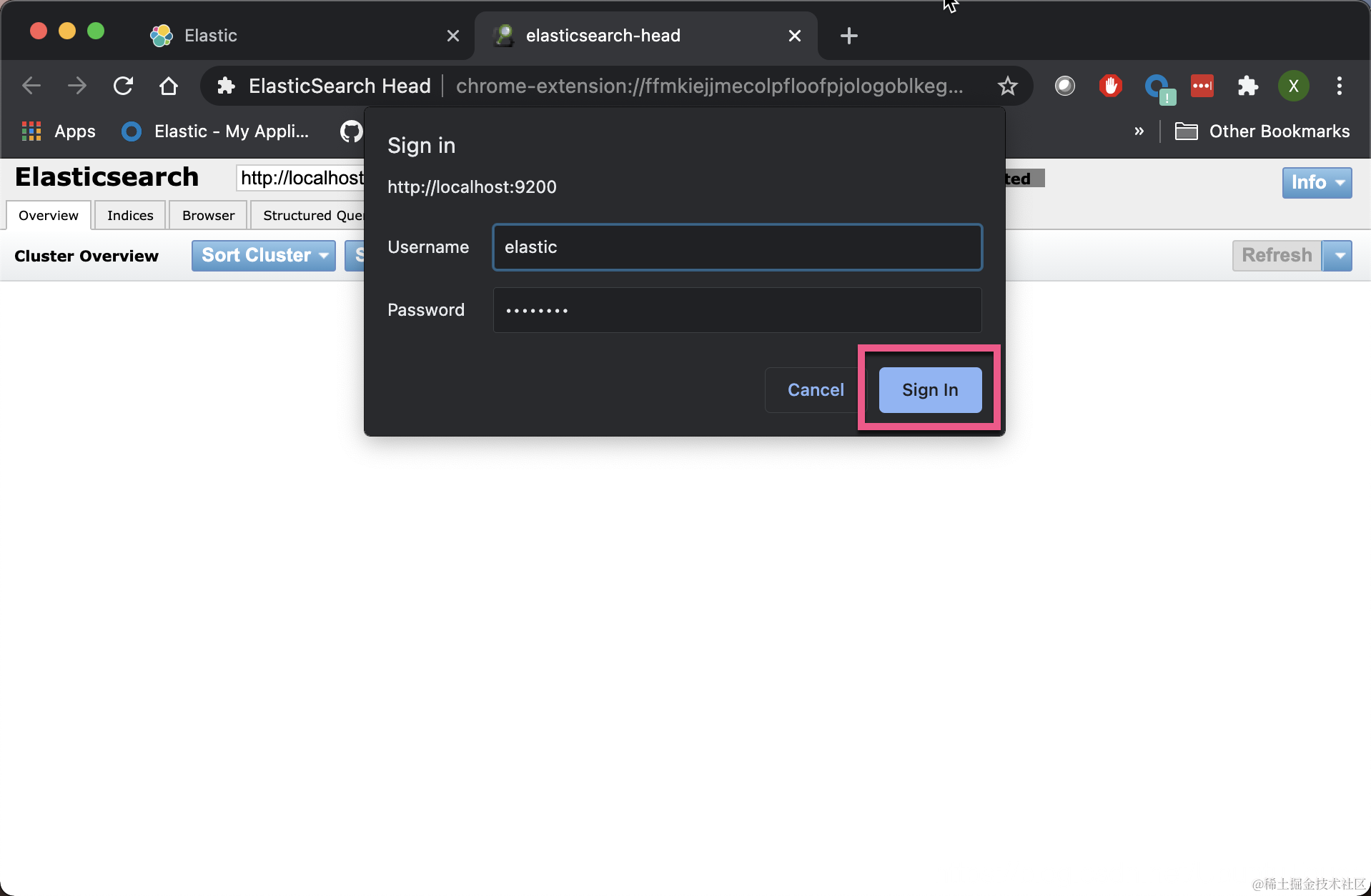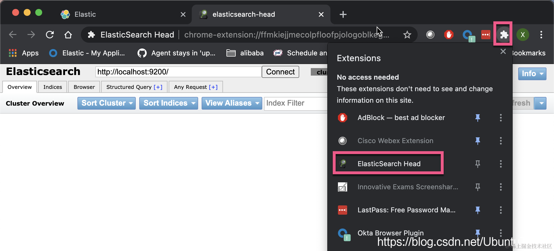 等安装完毕后,我们在浏览器中启动 elasticsearch head: