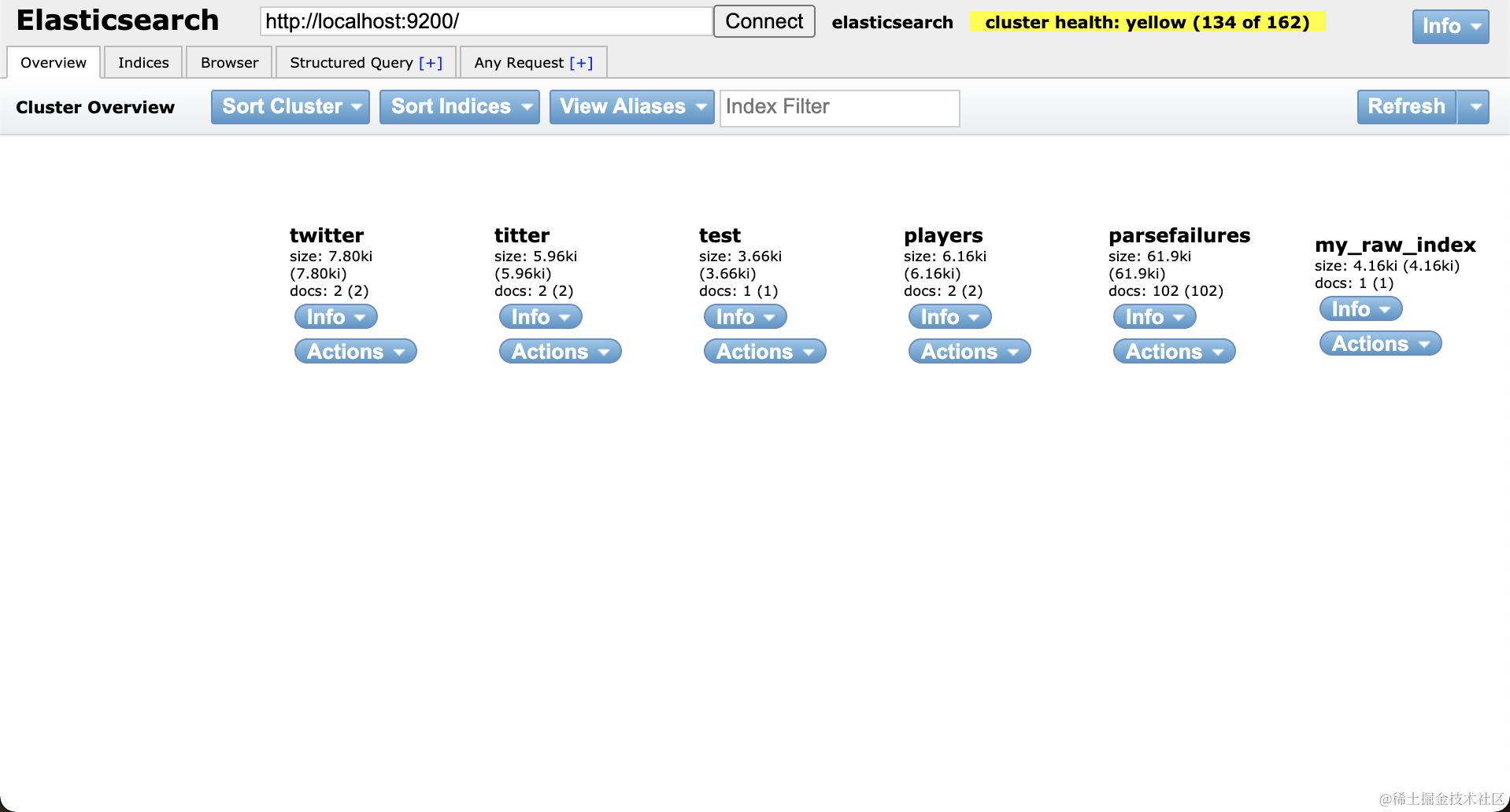 - ClusterOverview,它显示集群的拓扑,并允许你执行索引和节点级别的操作