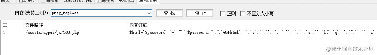 精彩的一幕来了。当我搜索preg_replace的时候发现了下图