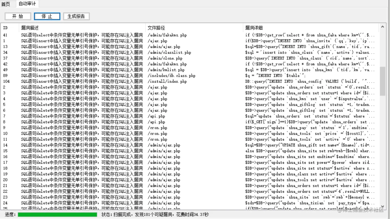 首先,我们先打开了法师的seay审计系统。由于sql注入漏洞是比较多见的,所以我往往会优先审计它。