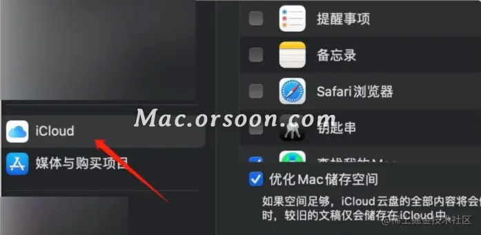 4.然后在右侧的使用iCloud的App列表中看到iCloud云盘,点击后面的“选项”。