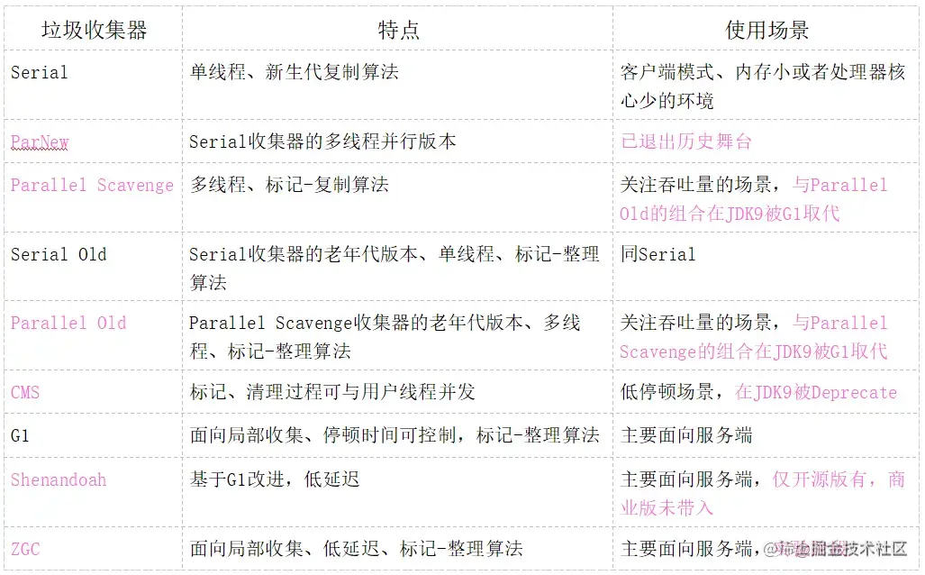 HotSpot VM中的垃圾回收器,以及适用场景: