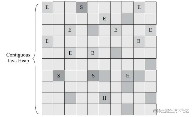 Region中还有一类特殊的Humongous区域,专门用来存储大对象。G1认为只要大小超过了一个Region容量一半的对象即可判定为大对象。每个Region的大小可以通过参数-XX:G1HeapRegionSize设定,取值范围为1MB~32MB,且为2的N次幂。而对于那些超过整个Region容量的超级大对象,将会被存放N个连续的Humongous Region中,G1的大多数行为都把HumonGous Region作为老年代的一部分来进行看待。
