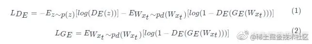判别器D_D_DD_:为了让变分自编码器的重构输出W'_{x_t}_Wxt_′更接近于输入以学习输入数据的分布,一般情况下会令损失函数为输入和输出的距离。然而,单独用范数距离并不一定能准确刻画输入和输出的相似性。因此,DAEMON算法提出利用GAN的判别器进一步来辨认输出和重构的相似性。