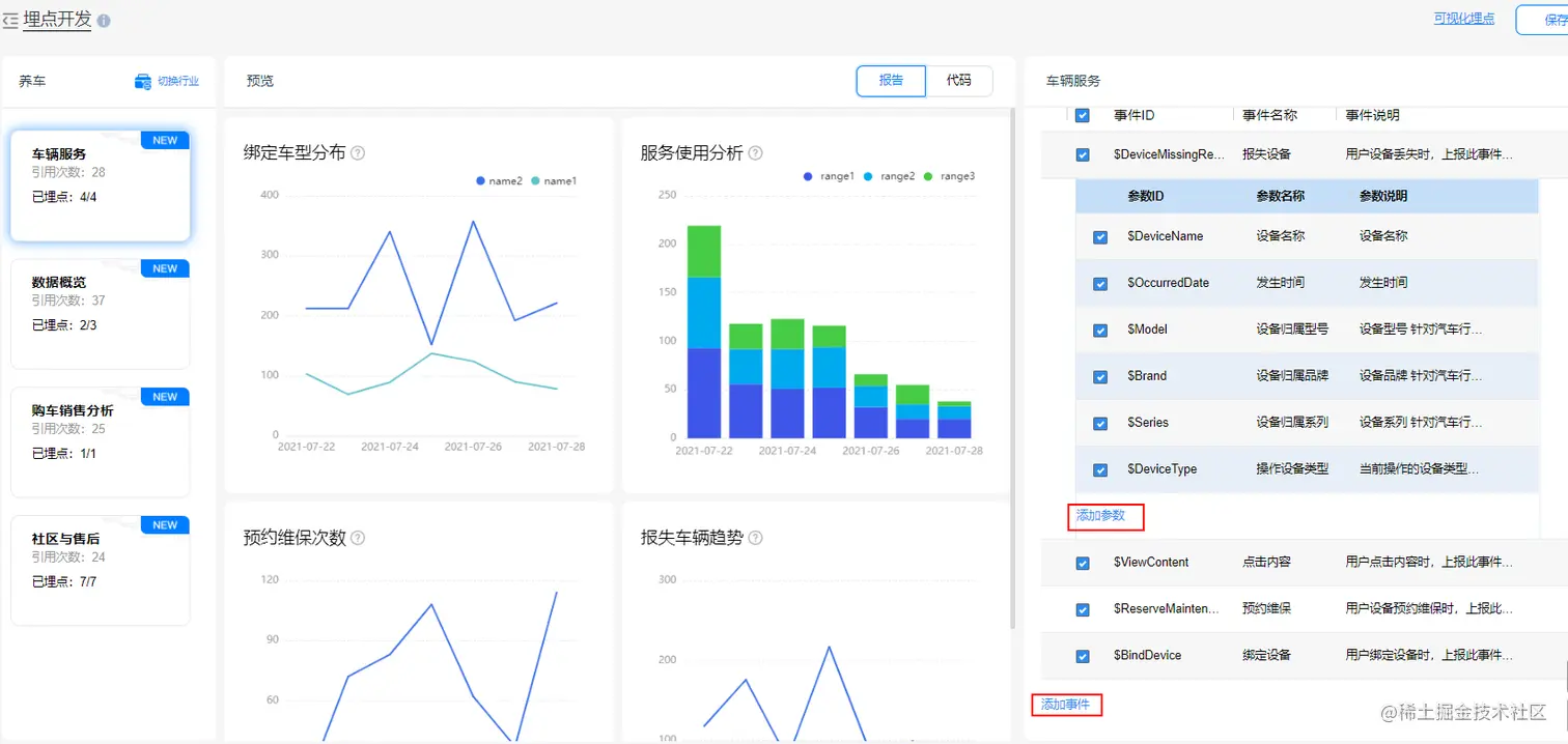 华为分析服务同时上线了汽车行业埋点模板,并支持事件和参数的筛选和新增,实时更新可视化预览与代码样例,可按需完成埋点。支持从应用集成到埋点开发、埋点验证与管理的全链路跟踪,极大提高埋点效率与准确性。