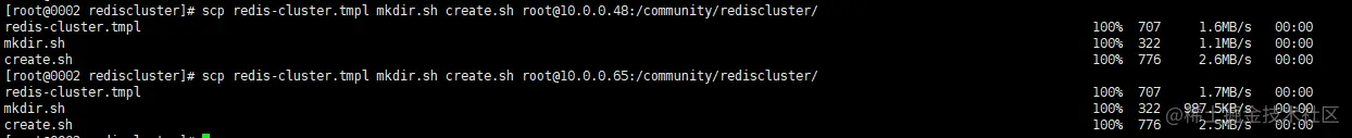 scp redis-cluster.tmpl mkdir.sh create.sh root@10.0.0.48:/community/rediscluster/