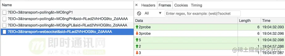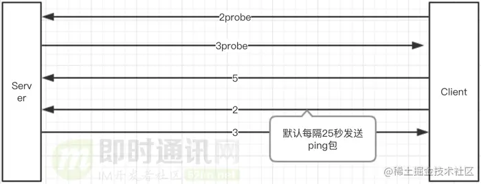 WebSocket的测试开始于发送probe,如果服务器也响应probe的话,客户端就必须发送一个upgrade包。