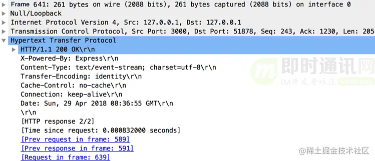之前在第一条polling请求的时候,服务端编码发送了这个数据: