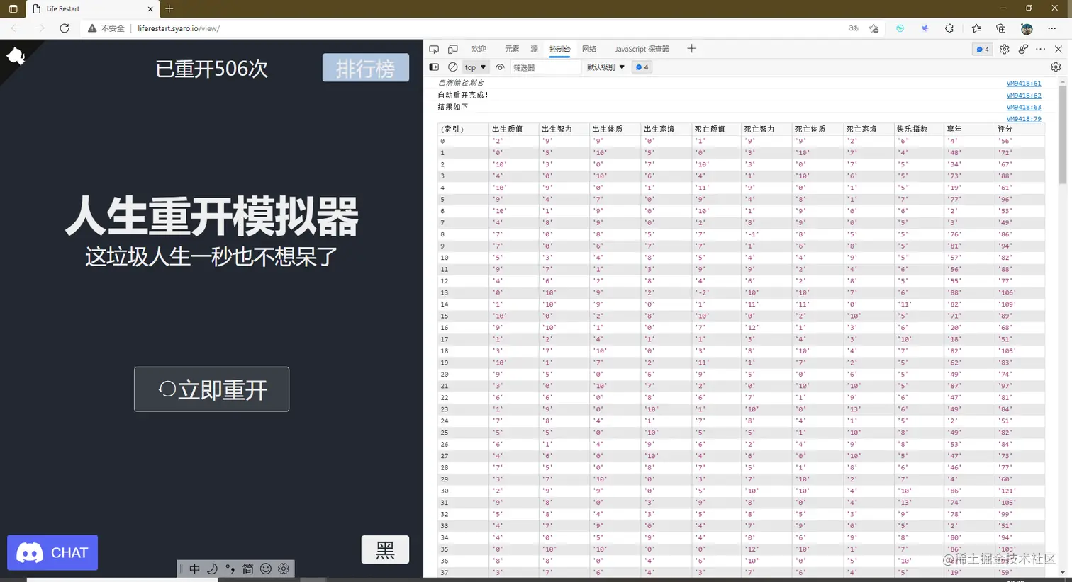 最近痴迷人生重开模拟器,玩儿了很久也没开出像样的人生,所以灵光一现决定做个自动人生重开,看看,即使重开了,我们的人生大概会过的怎么样。