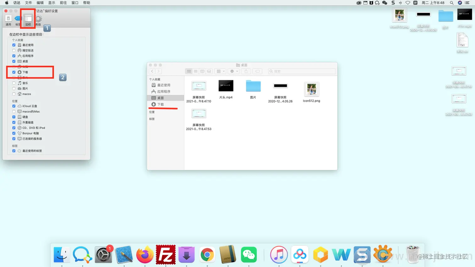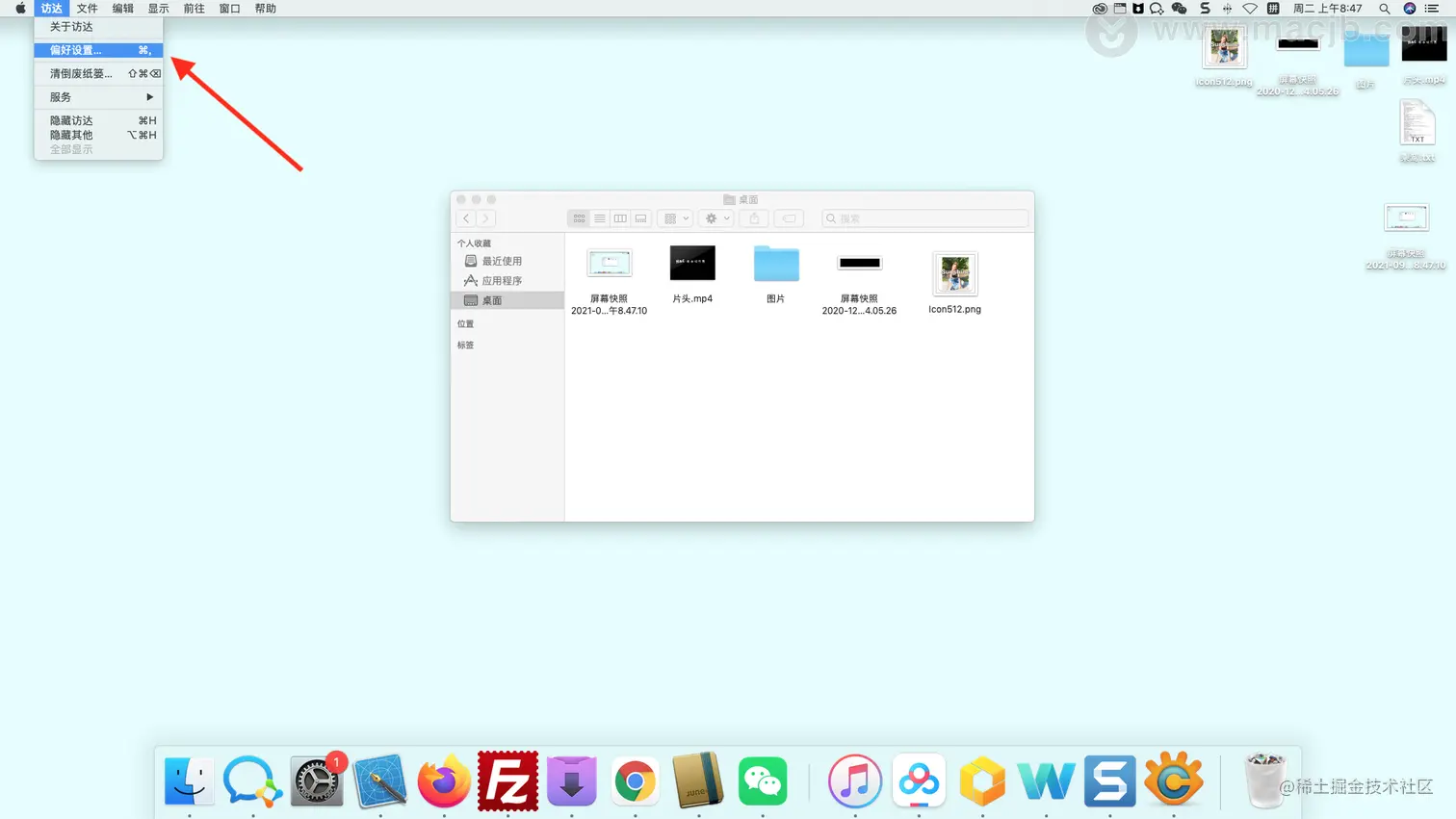 mac的dock栏里的”下载“不见了,怎么解决 路过mac 2021-09-07 537 阅读1分钟 在电脑上发现访问到这里的下载边栏不见了,那怎么还回来的呢?让其显示下载的目录? 方法/步骤 1、打开访问达,让左上角显示访问达,然后点击【访问达】。 2、点击【首选项】 3、点击【边栏】,把【下载】勾上,下载边栏就会出现了。 如果边栏都不见了,按【option+cmd+s】就可以恢复。