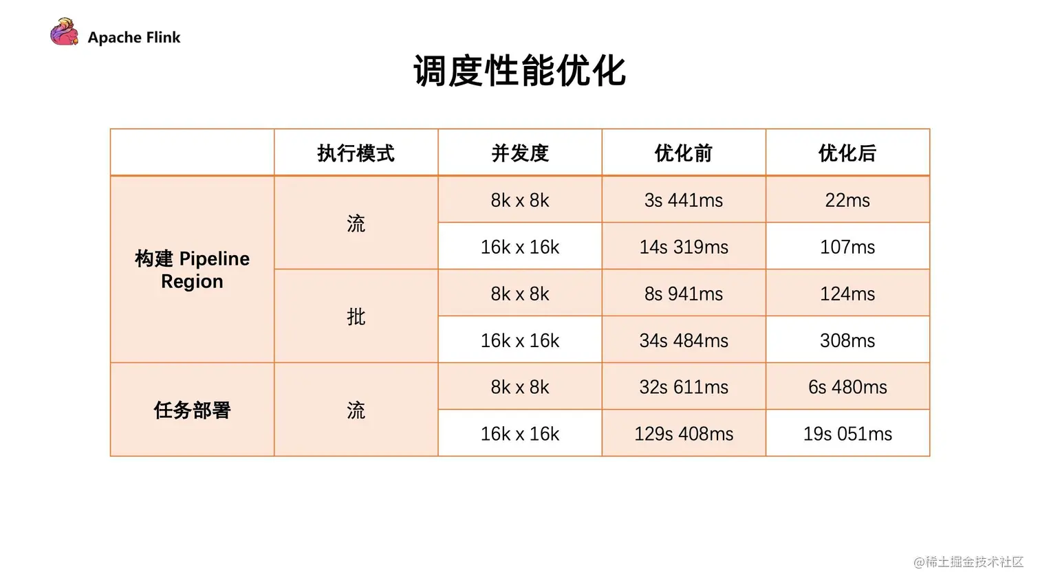 - **构建 Pipeline Region 的性能提升:**所有由 pipline 边所连接构成的子图 。在 Flink 任务调度中需要通过识别 Pipeline Region 来保证由同一个 Pipline 边所连接的任务能够同时进行调度。否则有可能上游的任务开始调度,但是下游的任务并没有运行。从而导致上游运行完的数据无法给下游的节点进行消费,可能会造成死锁的情况
