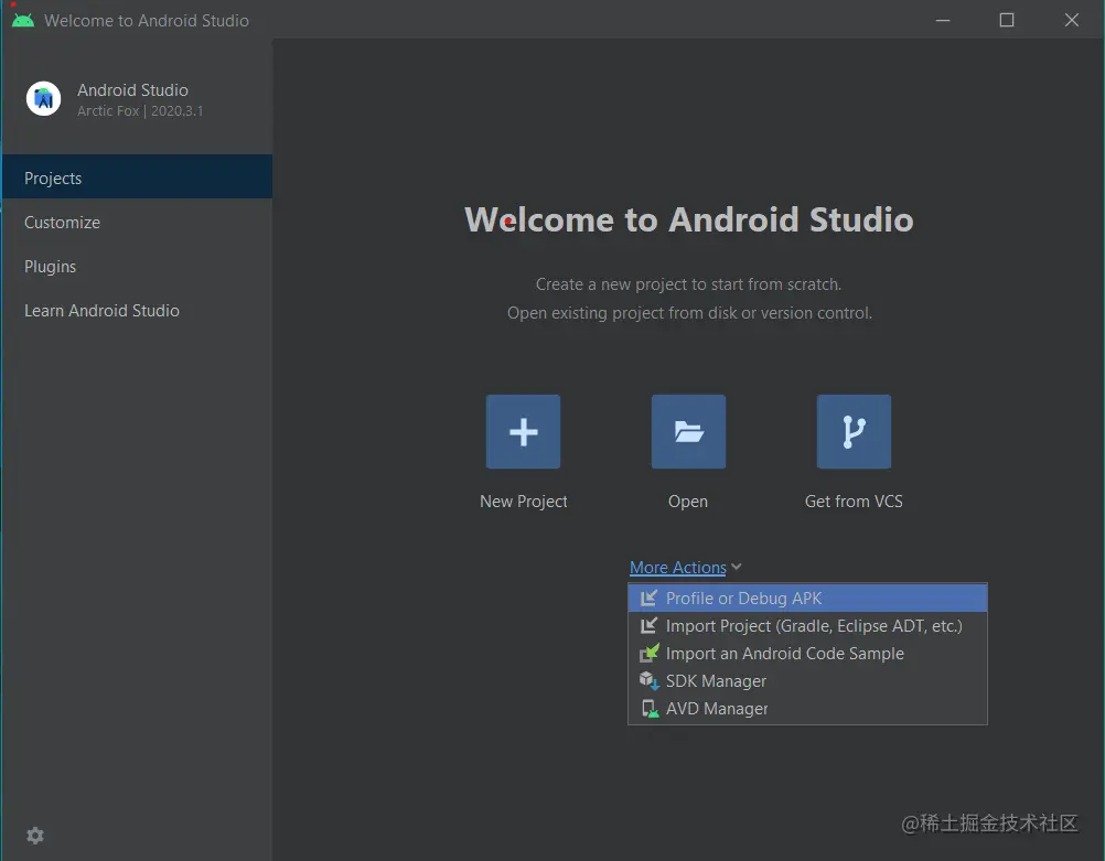 flutter config --android-studio-dir <directory>设置 Android Studio 安装的目录 - 打开 Andriod Studio