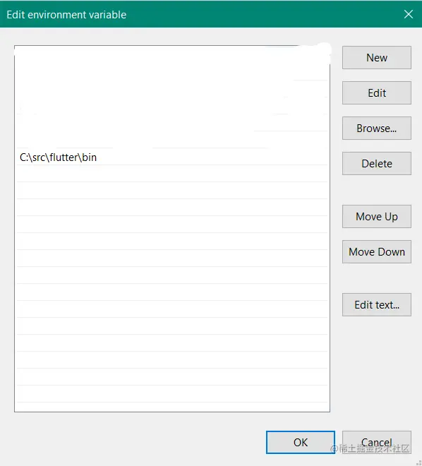 New并粘贴的路径flutter\bin然后按「确定」 - 现在,打开 cmd (或任何终端窗口)并输入以下命令