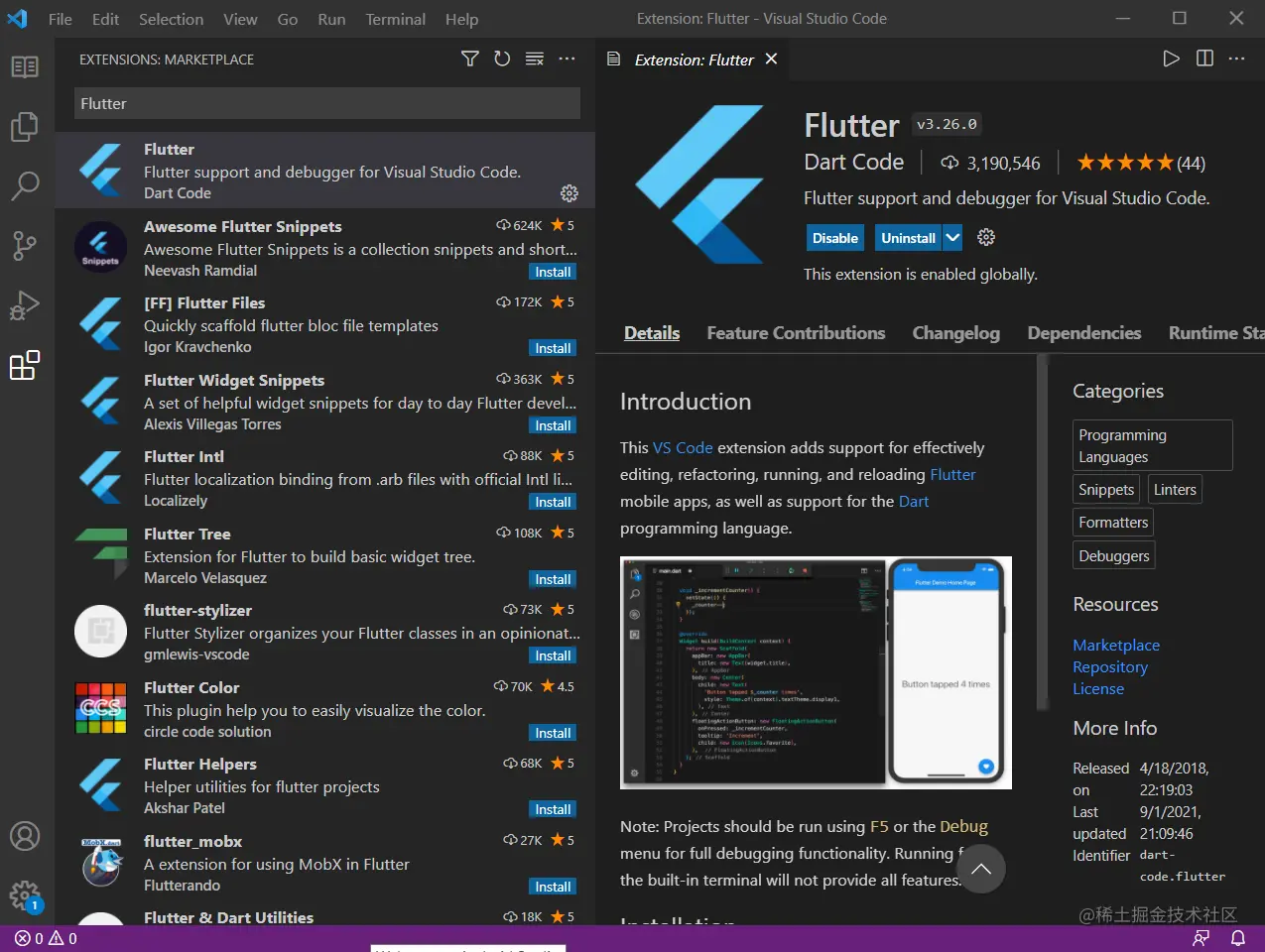 VS Code Flutter 扩展