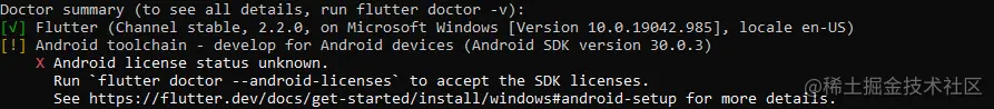 dart flutter doctor \--andriod-licenses