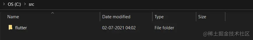 C:\src并粘贴提取的 Flutter SDK