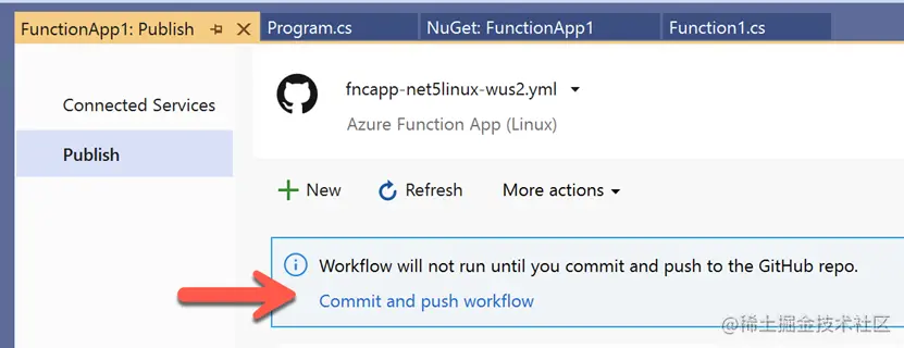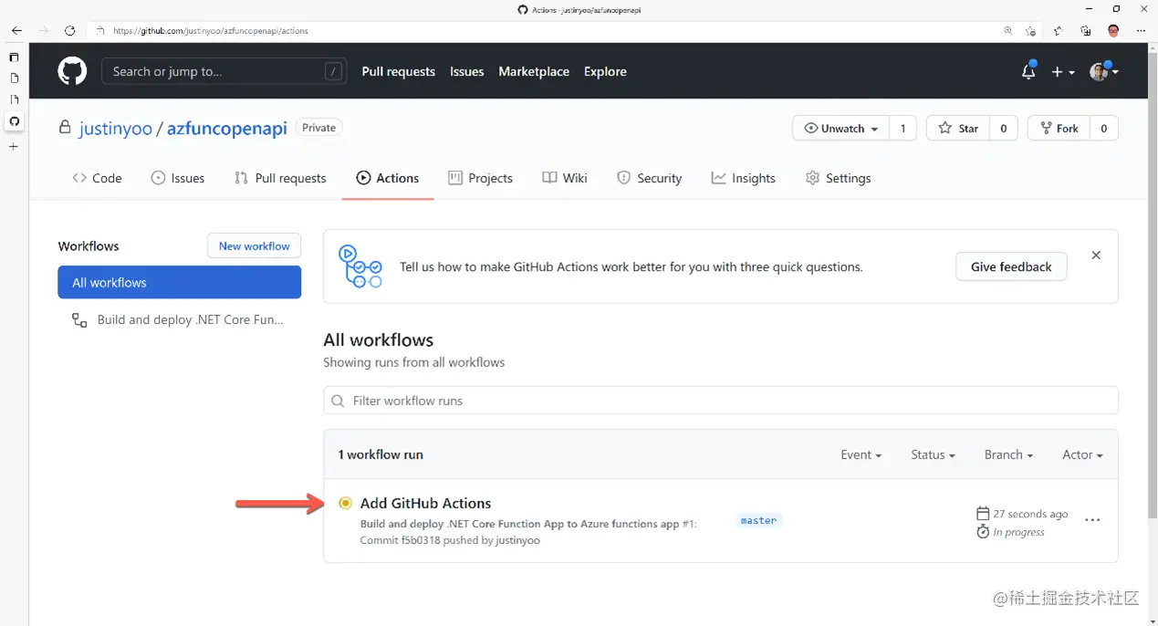 GitHub Actions 工作流现已自动生成。 但这需要一个新的commit。