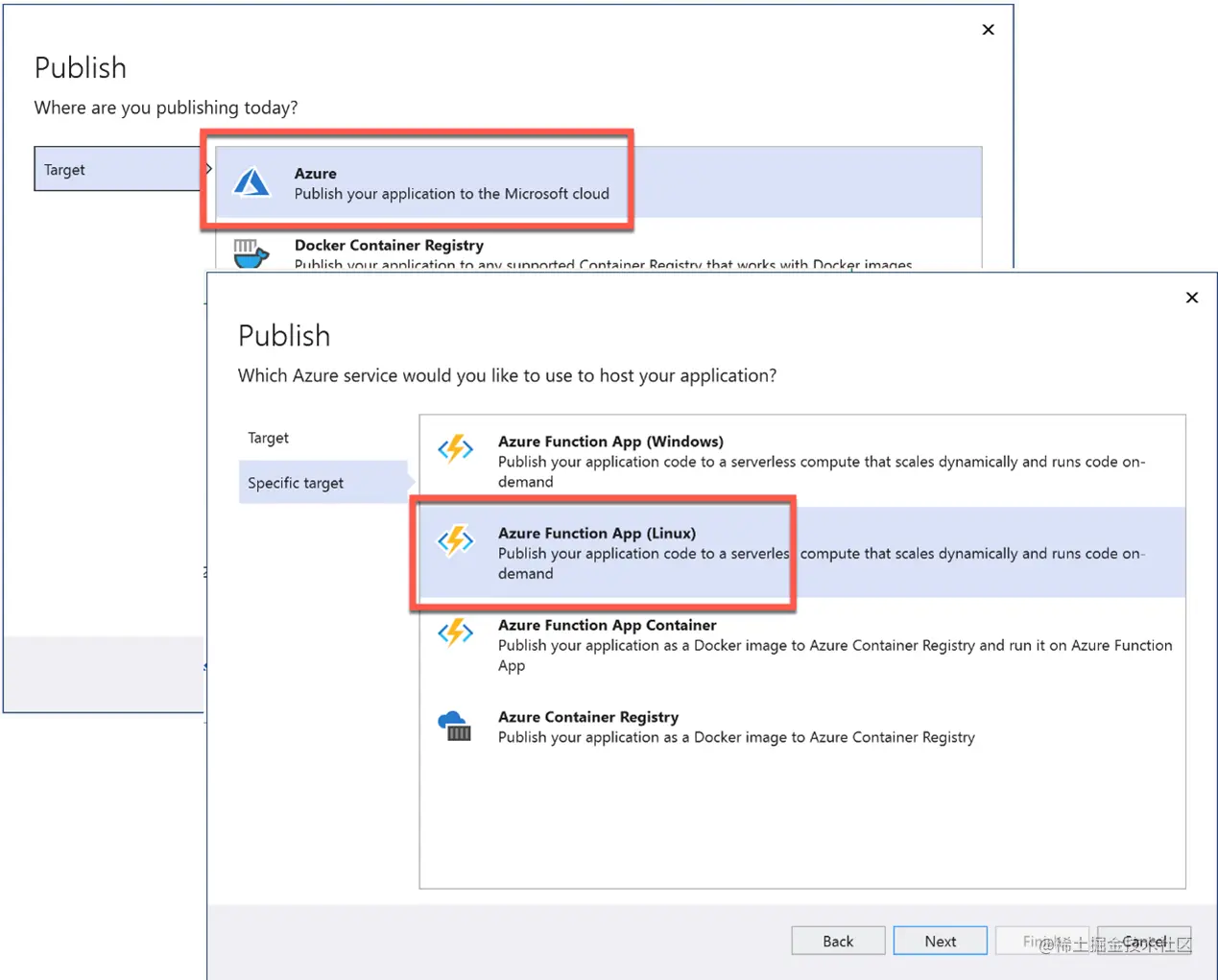 然后会出现一个类似的弹出窗口。这次让我们使用"Azure Function App (Linux)"菜单。