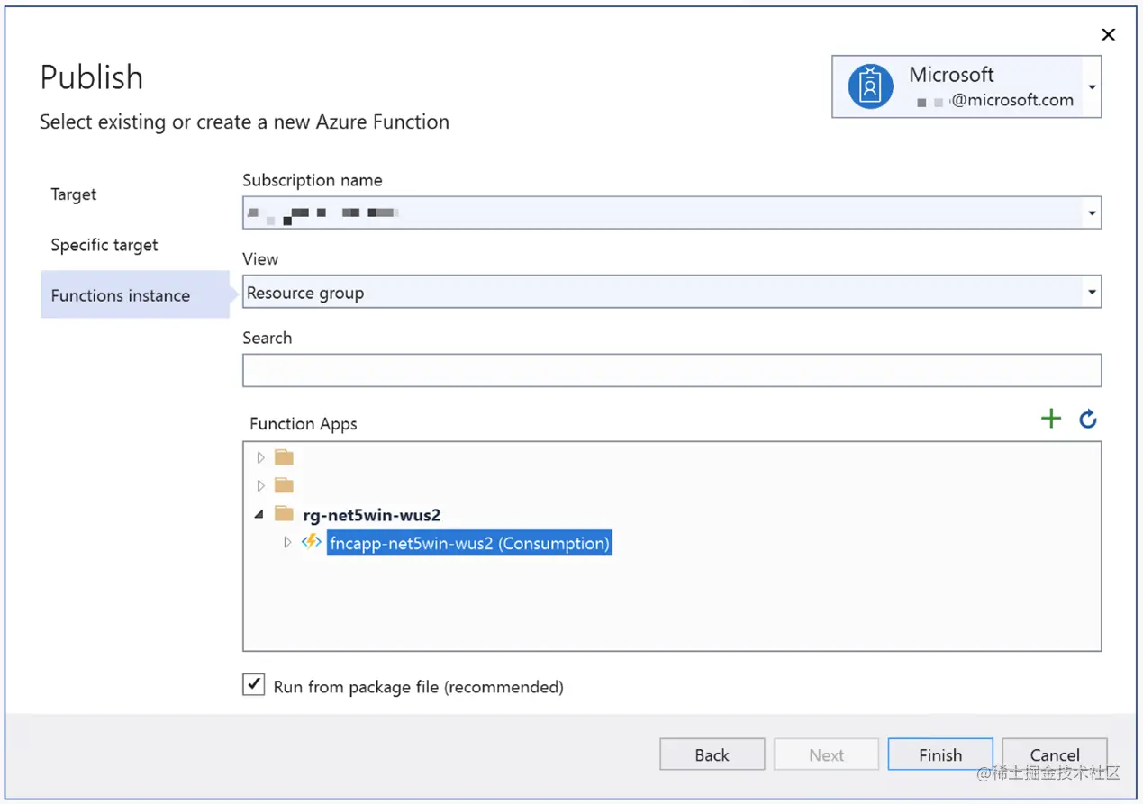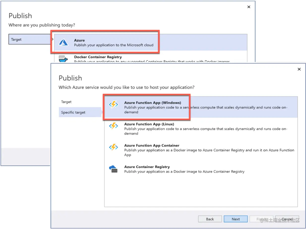 选择"Azure",然后选择"Azure Functions App (Windows)"。