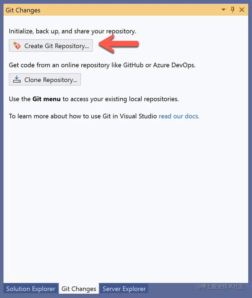 这一次,让我们将相同的应用程序部署到Linux实例。除此之外,让我们使用GitHub Actions。为了做到这一点,你必须将这个应用程序上传到GitHub存储库。因此,移动到"Git Changes"窗格并创建一个Git仓库。