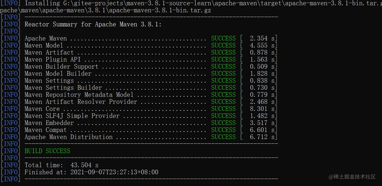 在此之前,我们需要把整个maven框架核心,先编译一次,因此,在G:\gitee-projects\maven-3.8.1-source-learn(只是我这边的目录)下,执行: